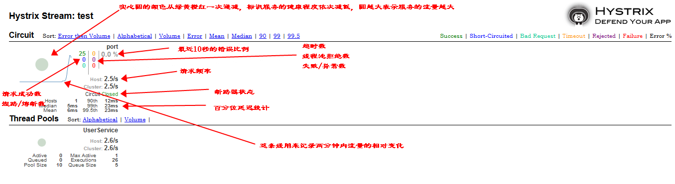 上图其实就是http://localhost:6001/hystrix.stream返回结果图形化显示,想更深的了解图上每个指标的含义请点击进入