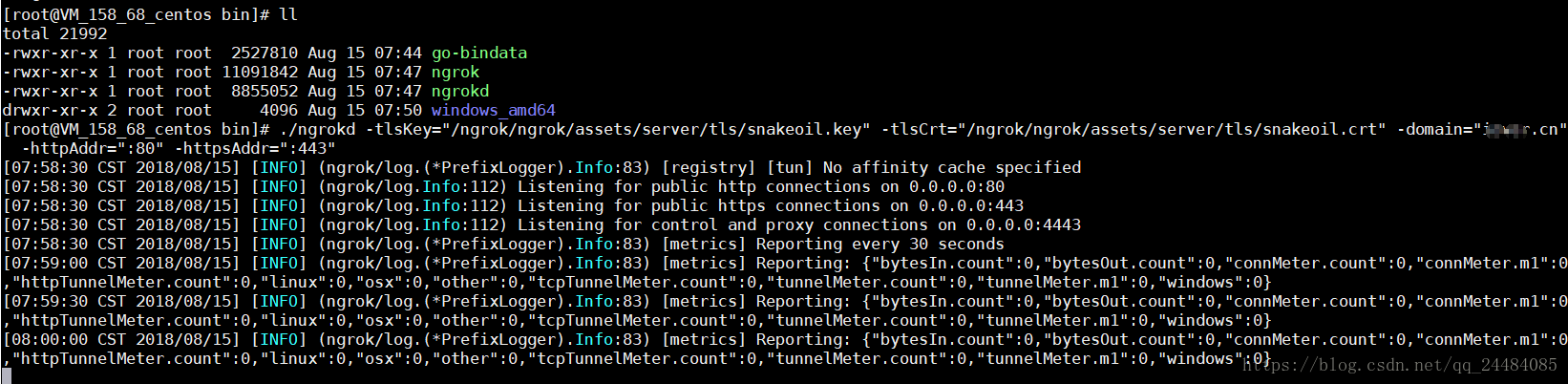 setsid ./ngrokd -tlsKey="/ngrok/ngrok/assets/server/tls/snakeoil.key" -tlsCrt="/ngrok/ngrok/assets/server/tls/snakeoil.crt" -domain="example.cn" -httpAddr=":80" -httpsAddr=":443"