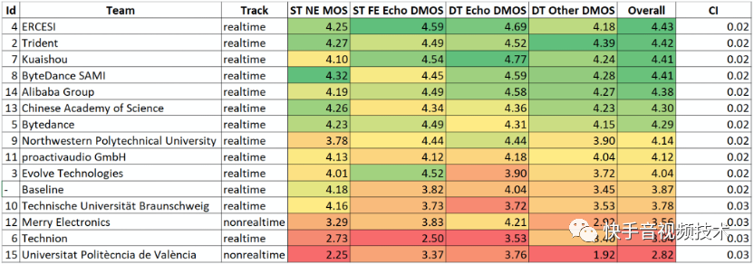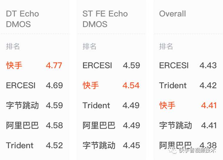 这些创新点以及完善的系统设计,使得快手在AEC Challenge比赛上,获得了优异成绩。