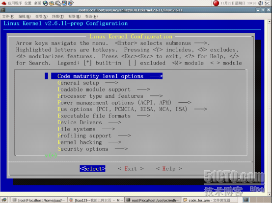 上面我们选择了kernel-version-i686-smp.config这个配置文件,用户可以根据自己的需求来选择configs目录下的内核配置文件。