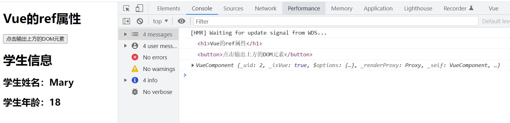 console.log(this.$refs.student)