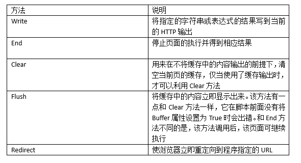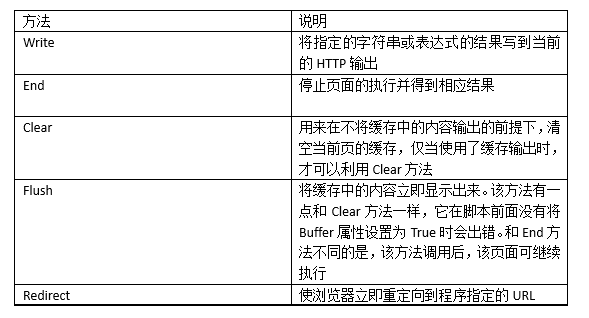 Response对象可以输出信息到客户端,包括直接发送信息给浏览器、重定向浏览器到另一个URL或设置cookie的值。ASP.NET中引用对象方 法的语法是“对象名.方法名”。“方法”就是嵌入到对象定义中的程序代码,它定义对象怎样去处理信息。使用嵌入的方法,对象便知道如何去执行任务,而不用 提供额外的指令。