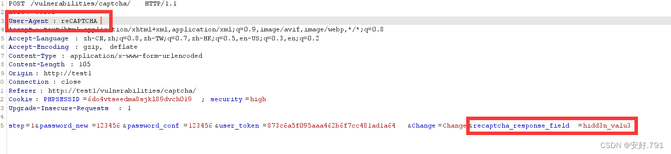 利用漏洞,更改recaptcha_response_field、User-Agent参数。