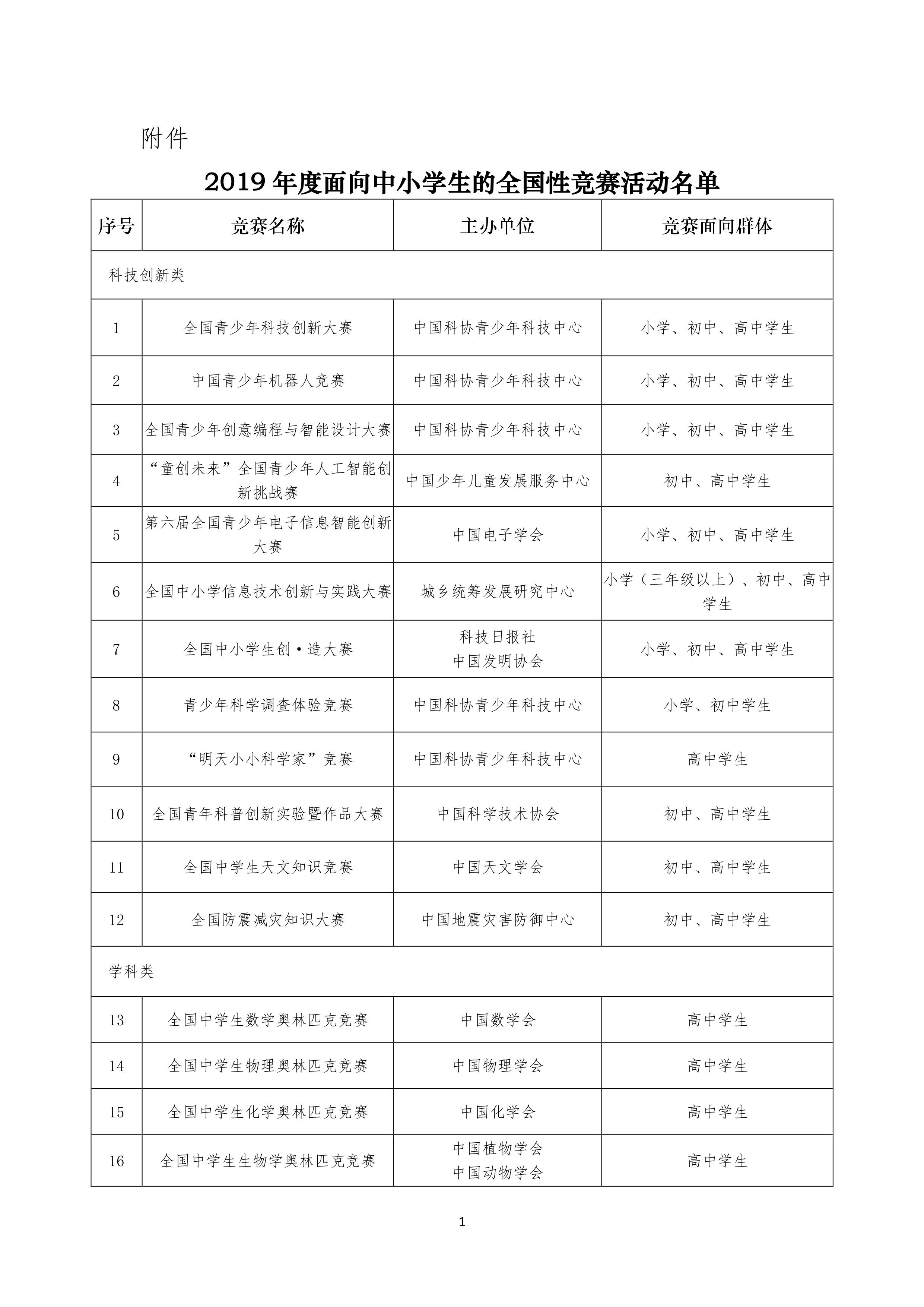 面向中小学的竞赛活动也越来越丰富多彩,附件具体名单如下: