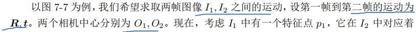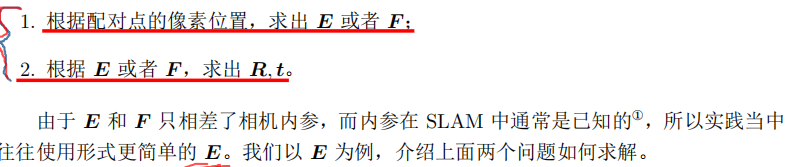 就可以通过这些二维图像点的对应关系,恢复出在两帧 之间摄像机的运动。这里“若干对”具体是多少对呢?我们会在下文介绍。