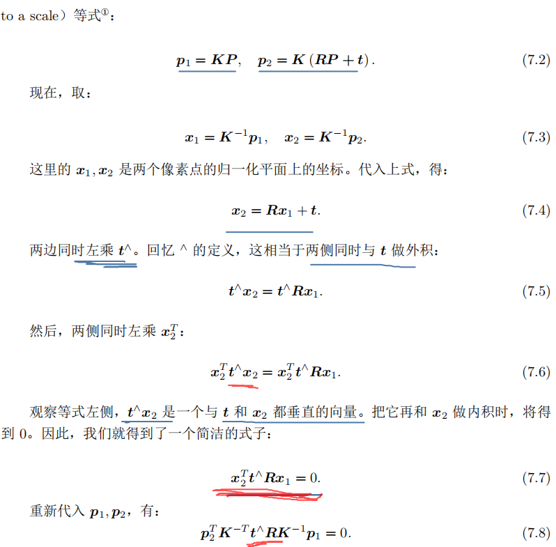 之差相差了相机内参矩阵。虽然它们在数值 上并不直观,但可以验证它们的数学关系。从 E