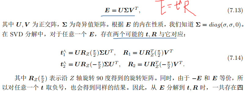 则又可以排除两组解。最后仅剩两组解,这时需要通过更多 的先验信息进行判断。通常我们可以通过假设已知场景平面的法向量来解决,