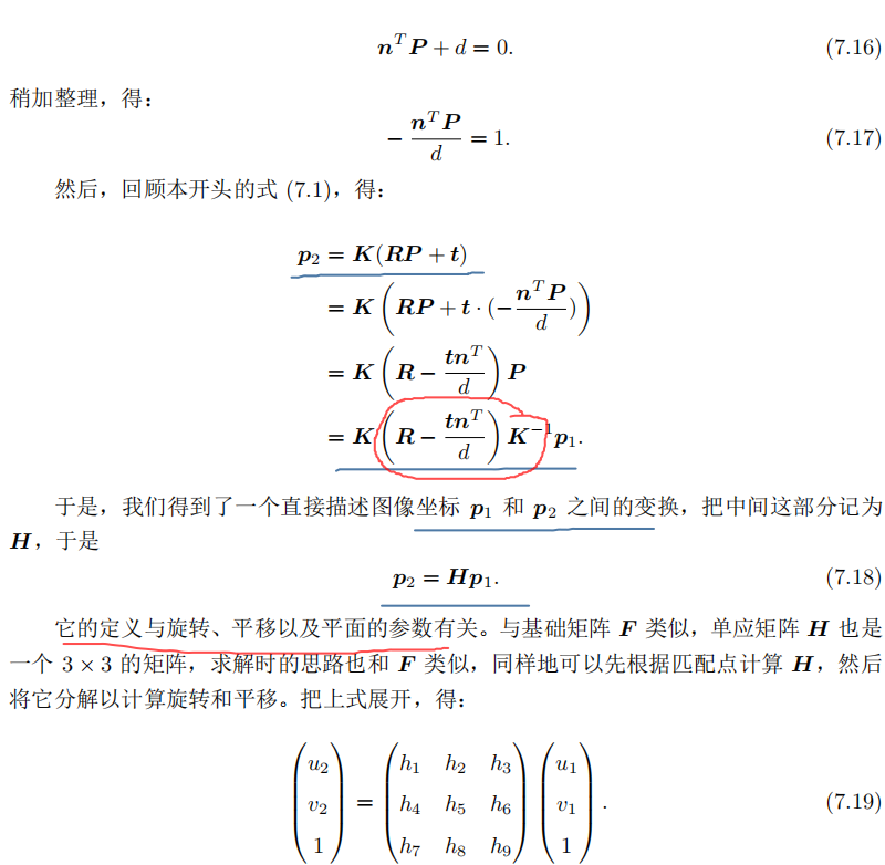 除了基本矩阵和本质矩阵,我们还有一种称为单应矩阵(