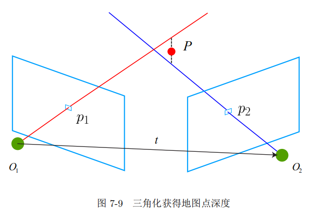 )(或三 角化)的方法来估计地图点的深度。