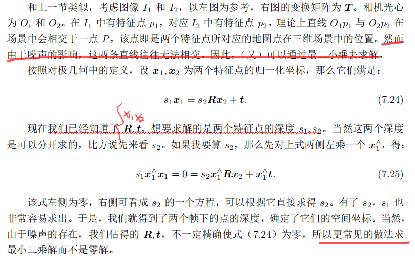 的做法,把特征点深度归一化可以控制场景的规 模大小,使计算在数值上更稳定些。不过这并没有理论上的差别。