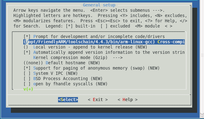 在图中选择可以看到的Cross-compiler tool prefix(new),然后输入交叉编译器的路径,输入后的结果为: