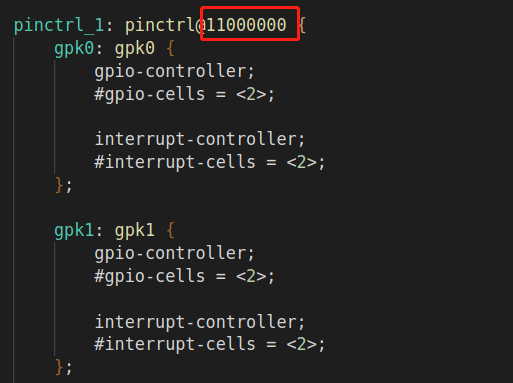 L0的基地址为0x11000000,因此需要寻找dtsi文件中对应的一级设备树节点。