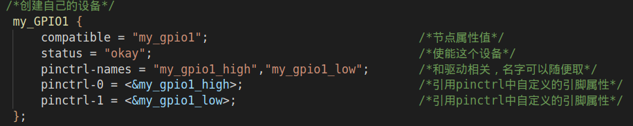 这样仅仅是添加了和pinctrl相关的节点,我们还要再设备树的根节点下添加供自己编写的驱动调用的设备树节点。