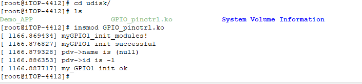 输入命令:insmod GPIO_pinctrl.ko