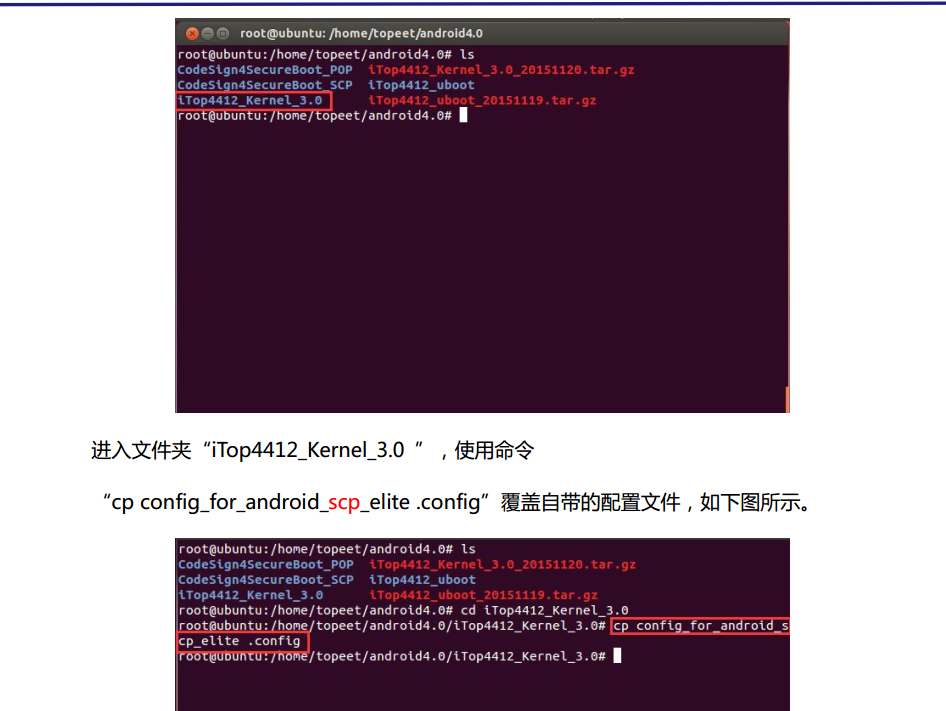 进入文件夹“iTop4412_Kernel_3.0 ”,使用命令