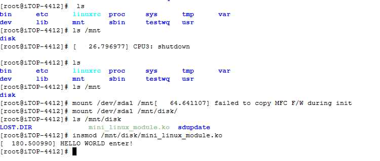lsmod /mnt/disk/mini_linux_module.ko 或者 cat /proc/modules