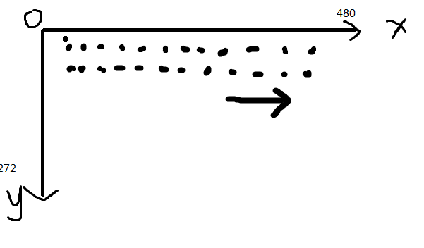 而且“上色”是从左到右一个点一个点,一行一行“上色”的,屏幕的坐标系如下图所示: