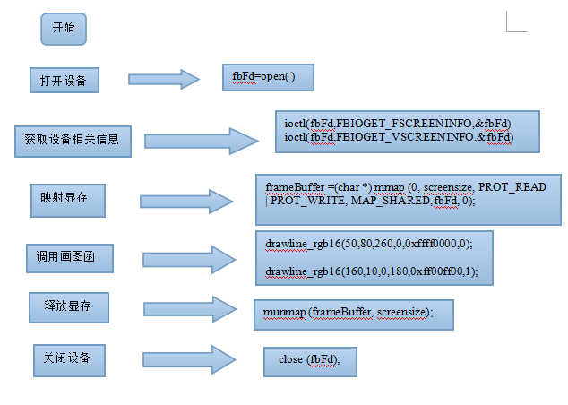 前面我们不是说了frambuffer就是linux内核驱动申请的一片内存空间,lcd驱动将frambuffer的地址通过mmap()将这片内存映射到应用程序空间,这样我们写入到fb的数据就写入到内核驱动里的frambuffer中去了,而lcd 的dma就将这些数据写入到lcd的sram中,从而显示在lcd上.