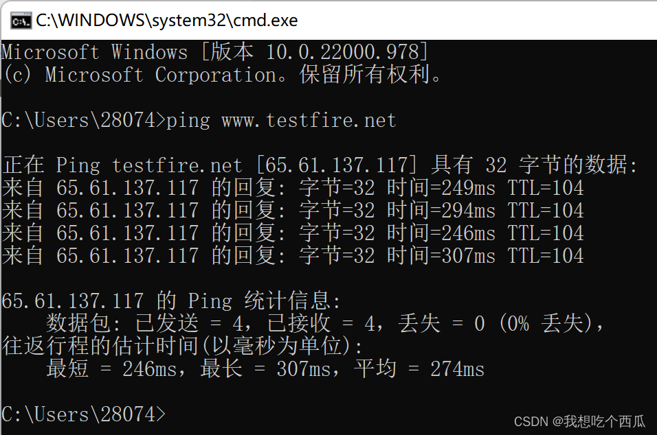 该命令不仅可以测试自己所使用的计算机是否可以与对应地址进行通信,同时也会显示所ping地址的IP地址。