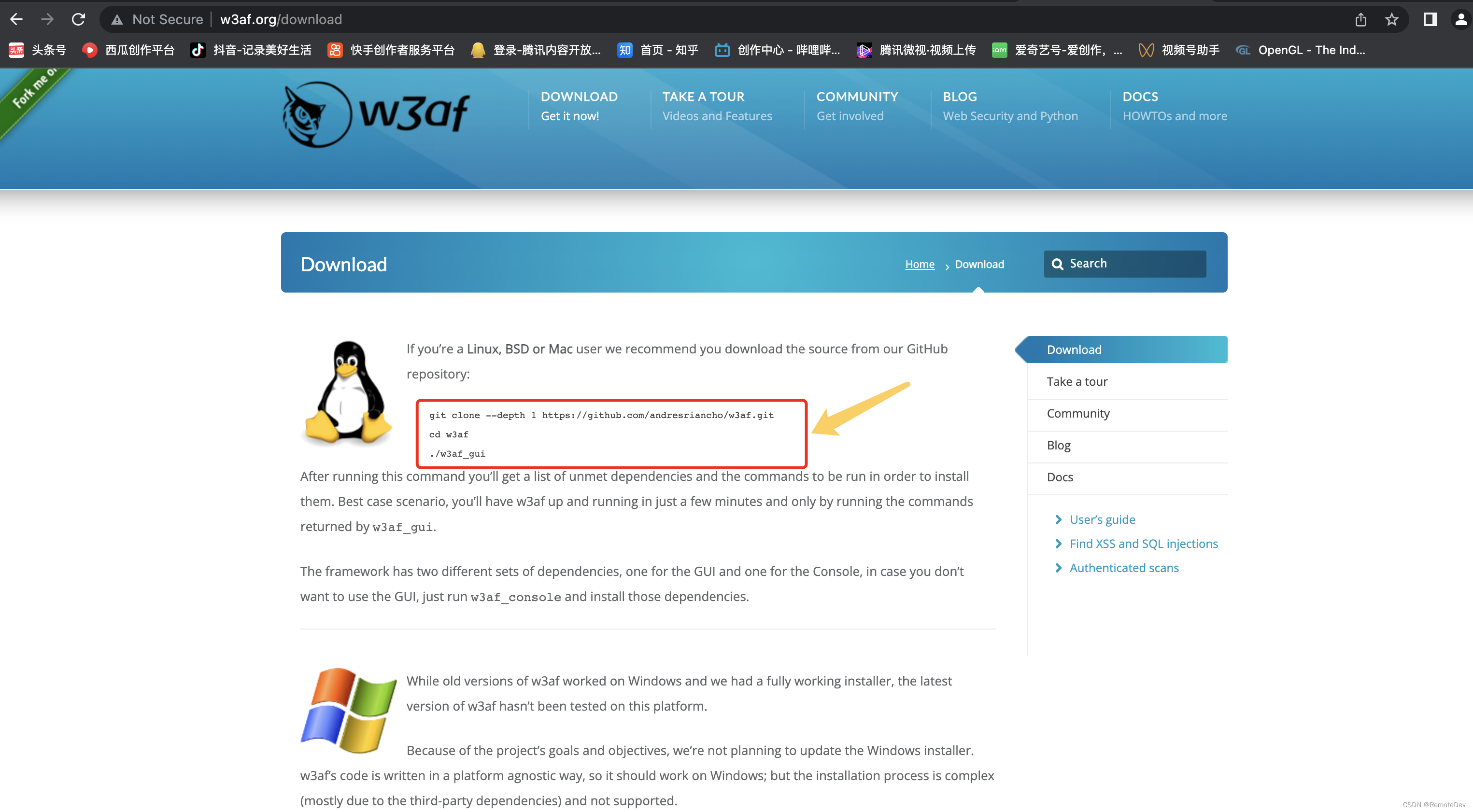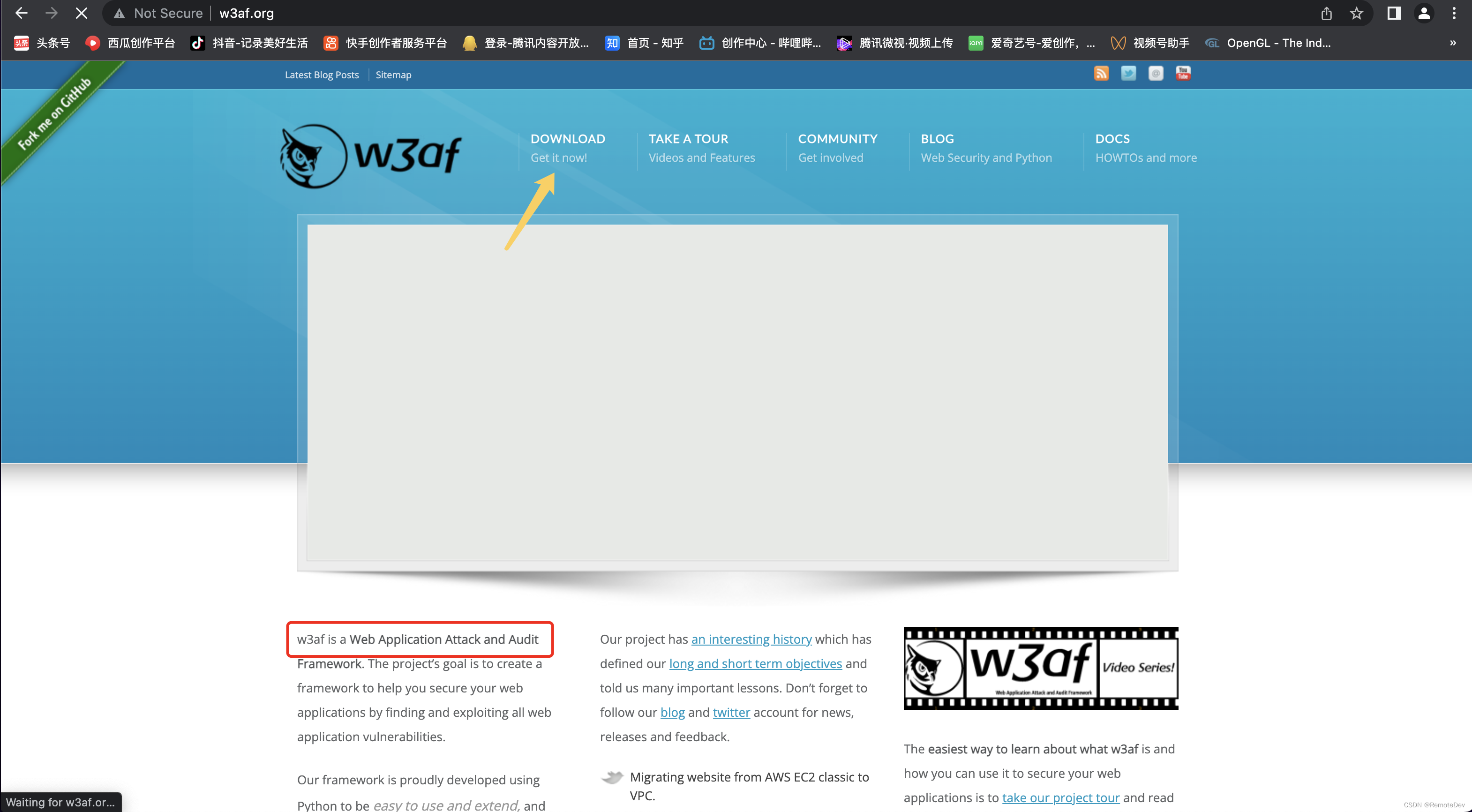 打开w3af.org
