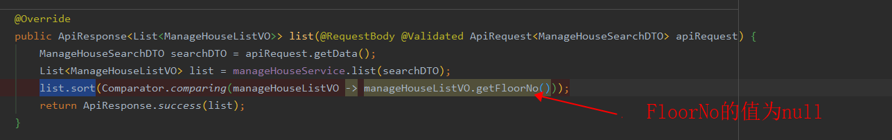 list.sort(Comparator.nullsLast(Comparator.comparing(manageHouseListVO -> manageHouseListVO.getFloorNo(), Comparator.nullsLast(String::compareTo))));
