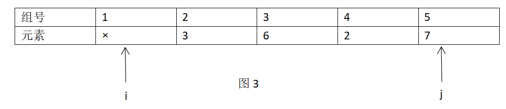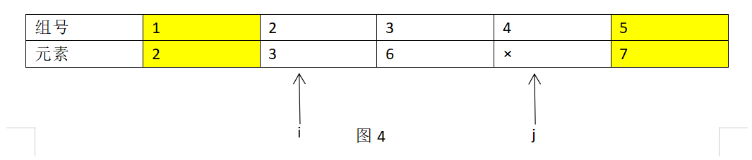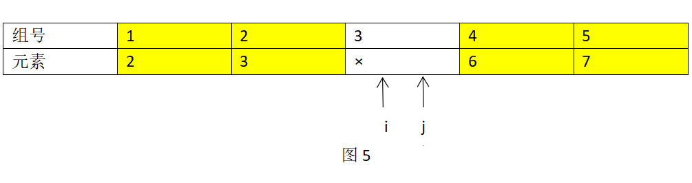 定义两个指针,i,j分别指向组号为1和组号为5的节点上(如图3):