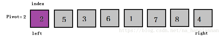 这时候,把之前的pivot元素,也就是2放到index的位置。此时数列左边的元素都小于2,数列右边的元素都大于2,这一轮交换终告结束。