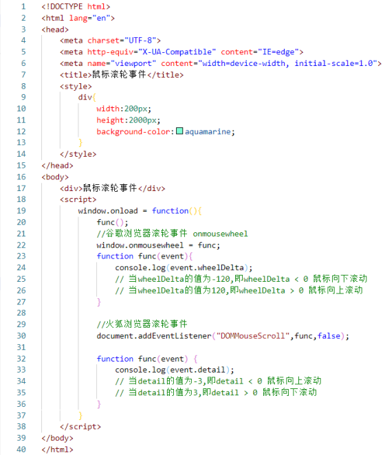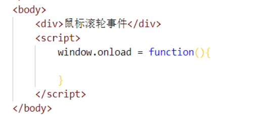 1.首先在body标签里给个div标签,div里打上鼠标滚轮事件,方便之后在浏览器上,当鼠标滚轮滚动时,就可以明显看出页面有在滚动