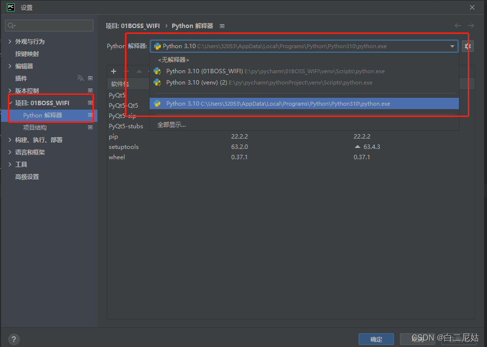 文件 —— 设置 —— 项目 —— python解释器