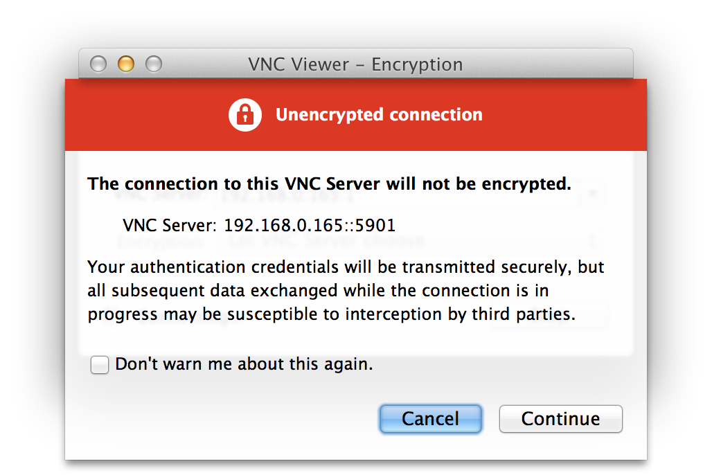 点击Connect按钮,你将会看到一个未加密连接的警告: