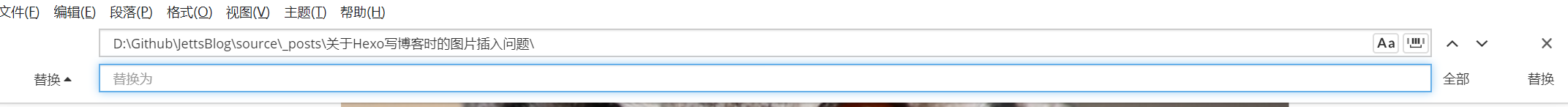 MarkDown文件内的所有插入的图片都自动地放在一个文件夹里,所以他们的路径的前缀都是一样的,可以使用Typora的快捷操作将前缀全部替换成空白。具体方法: