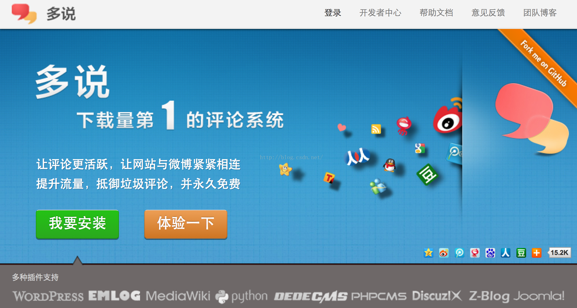 (1)登陆多说主页,使用自己喜欢的某个账号登陆。