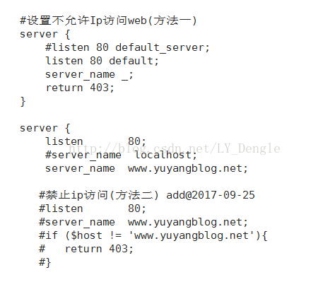 以上就是鳗鱼板栗最近收集整理的关于nginx只允许域名访问,禁止ip访问的全部内容,更多相关nginx只允许域名访问内容请搜索靠谱客的其他文章。