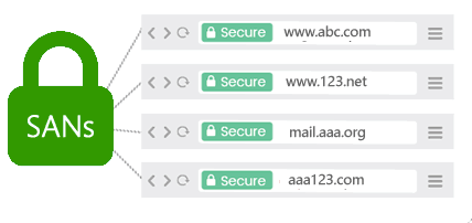 比如http://www.abc.com 、http://www.123.net 、http://mail.aaa.org 、http://aaa123.com 就可以申请一张多域名证书。