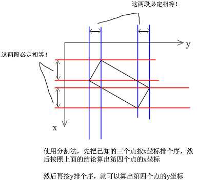 else if(b23+b31==b12) get_xy(pos+2,pos,pos+1);//直角点为3 (pos+2)