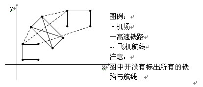 又到暑假了,住在城市A的Car想和朋友一起去城市B旅游。她知道每个城市都有四个飞机场,分别位于一个矩形的四个顶点上,同一个城市中两个机场之间有一条笔直的高速铁路,第I个城市中高速铁路了的单位里程价格为Ti,任意两个不同城市的机场之间均有航线,所有航线单位里程的价格均为t。