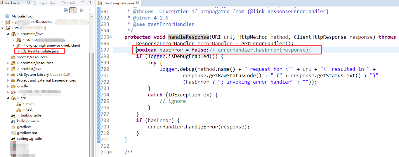 或者,修改resttemplate的源码,把对应的源码文件拷贝到自己的项目中,但不推荐。