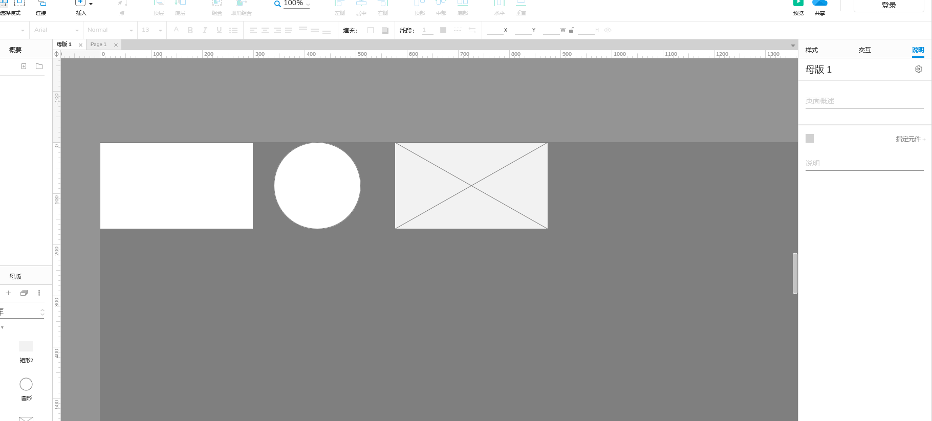 母版的编辑相当简单,直接双击该母版的名称,或双击出现在任何页面的母版实例,AXURE将会在一个新的页面中打开母版。