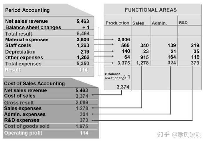 除此之外,还有直接记账在利润中心上的手工记账。但是所有记账在科目上的成本和费用,会根据他们所在的cost cener成本中心,走向不同的Functional Areas报告科目。