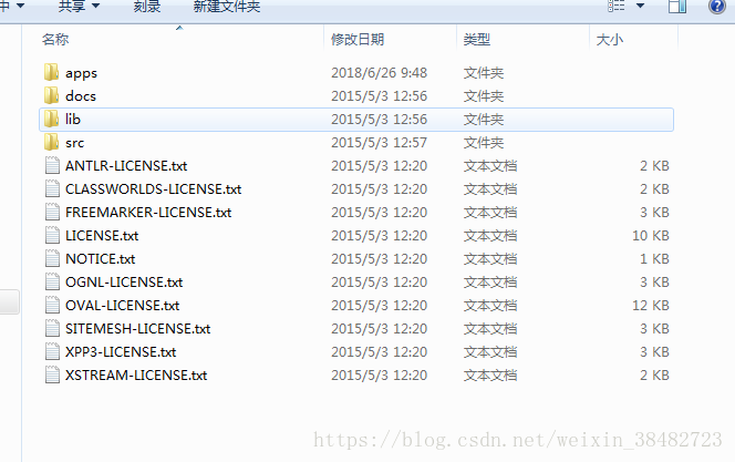 初学者建议这样找需要的jar包 打开apps找到struts2-blank.war文件然后将这个文件以解压的方式打开