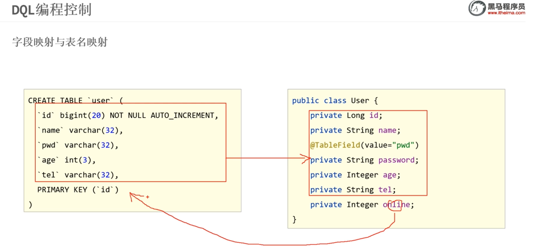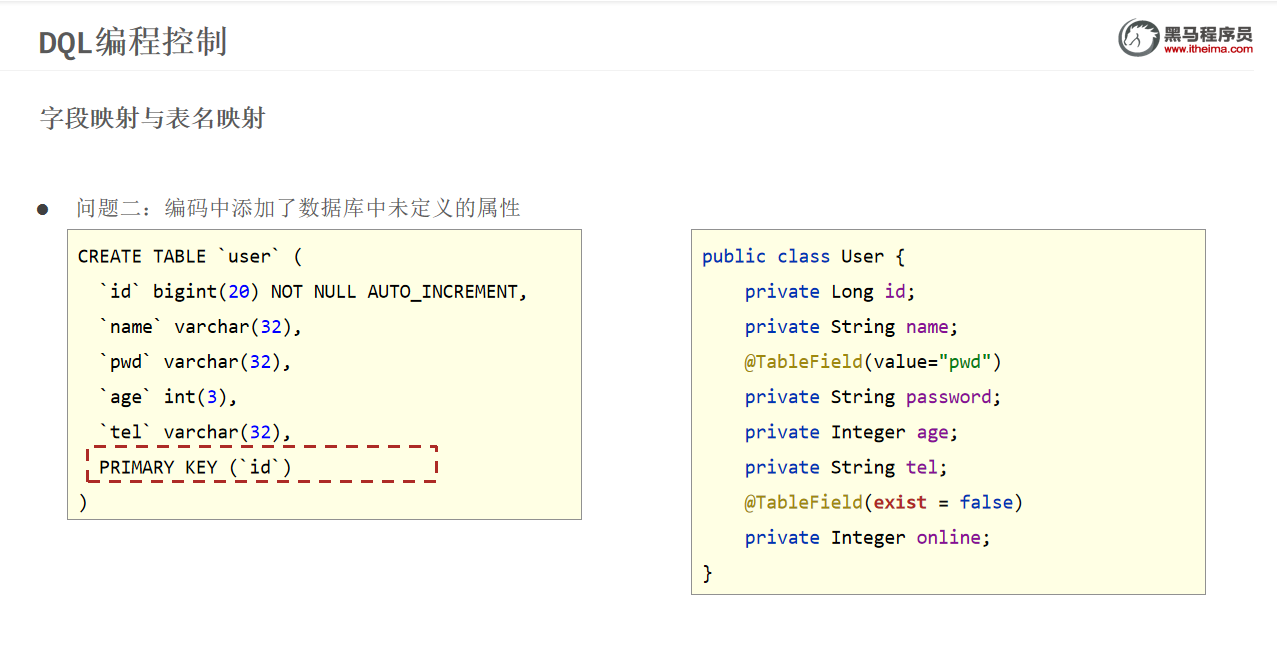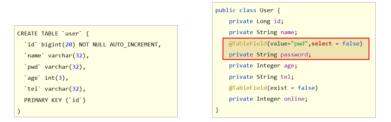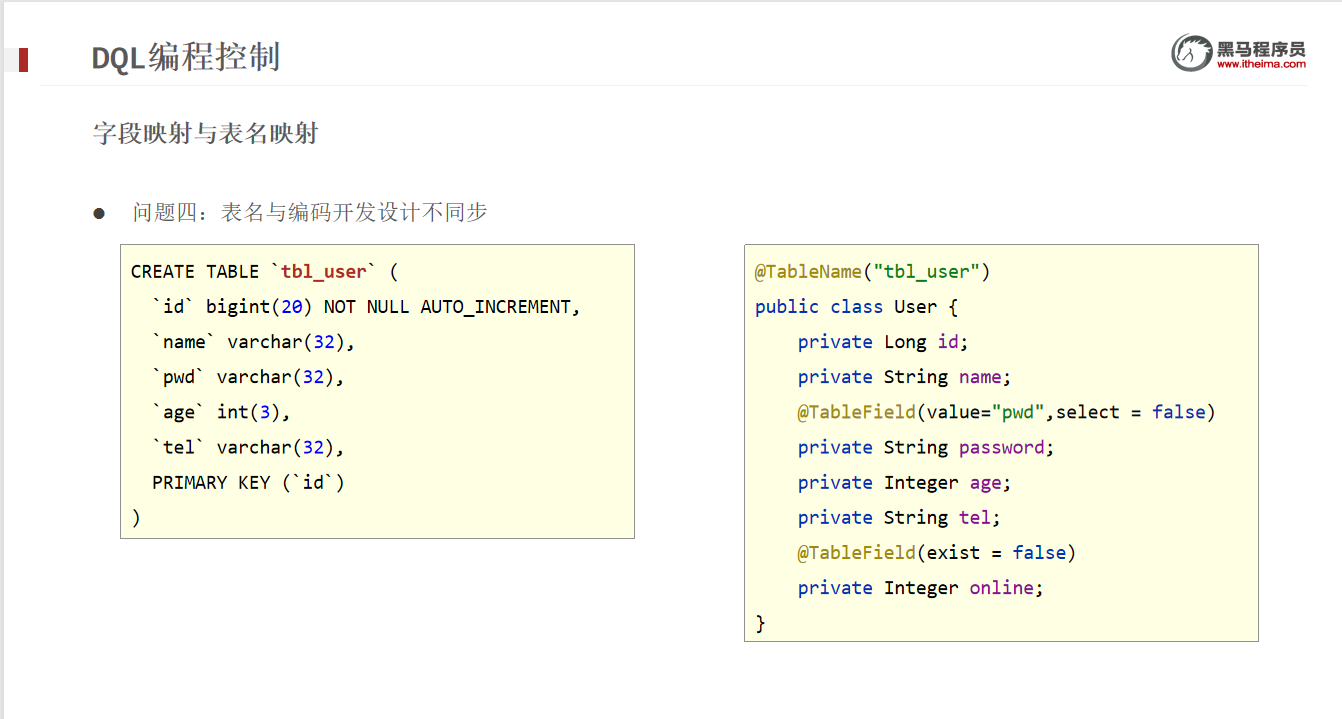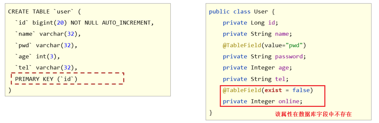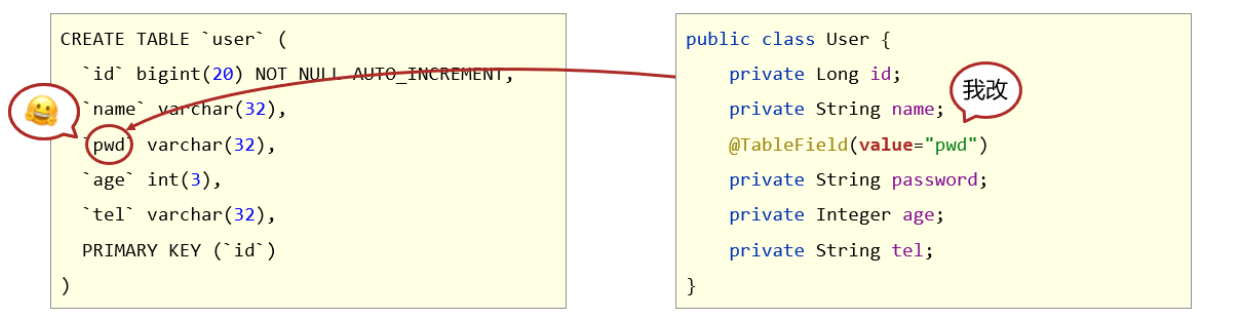 能够掌握MyBatisPlus的字段映射与表名映射