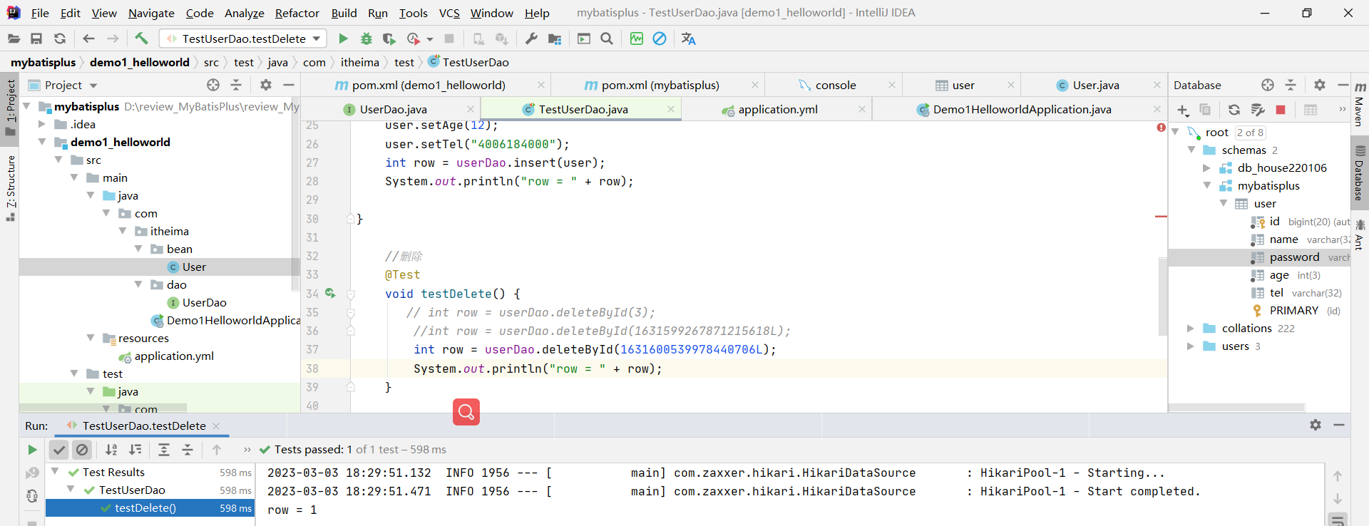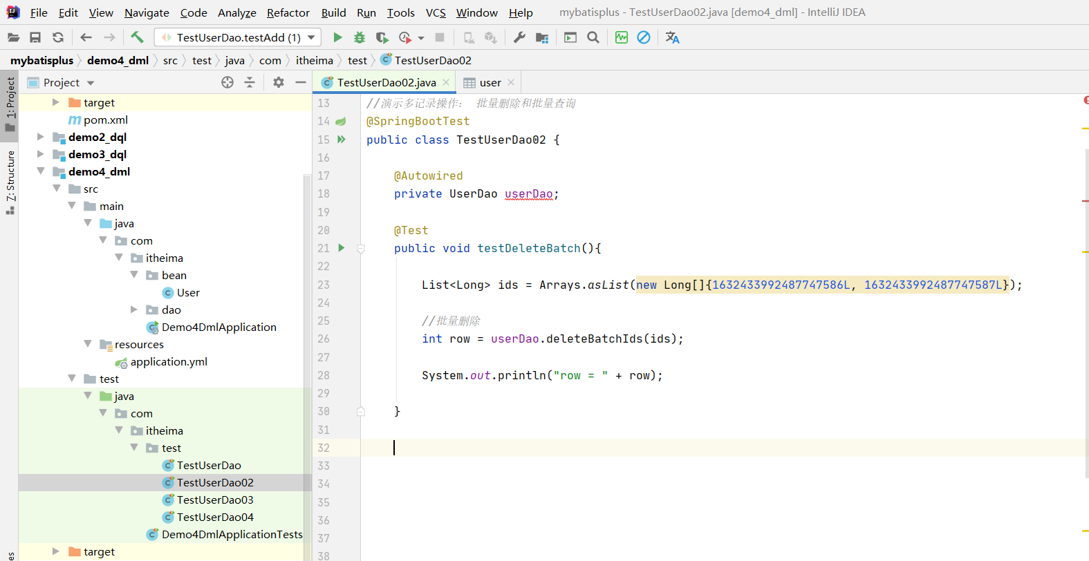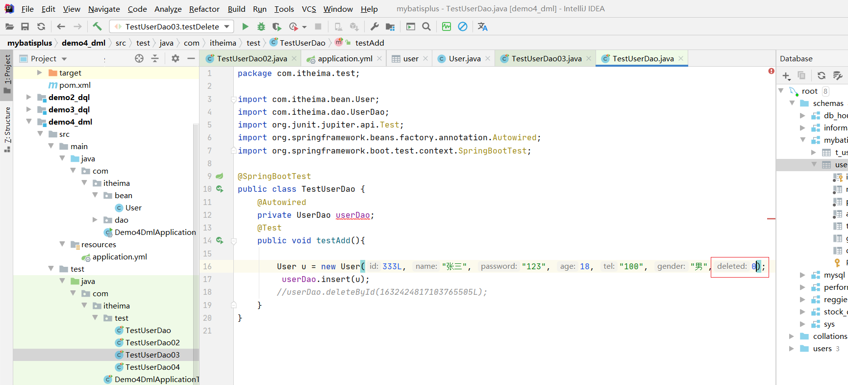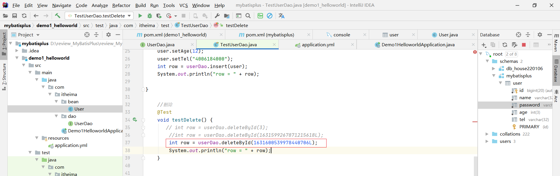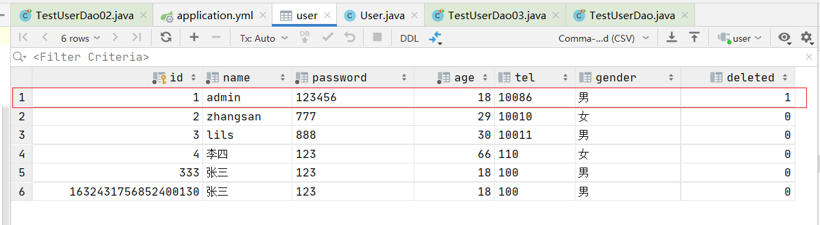 // int row = userDao.deleteById(3);