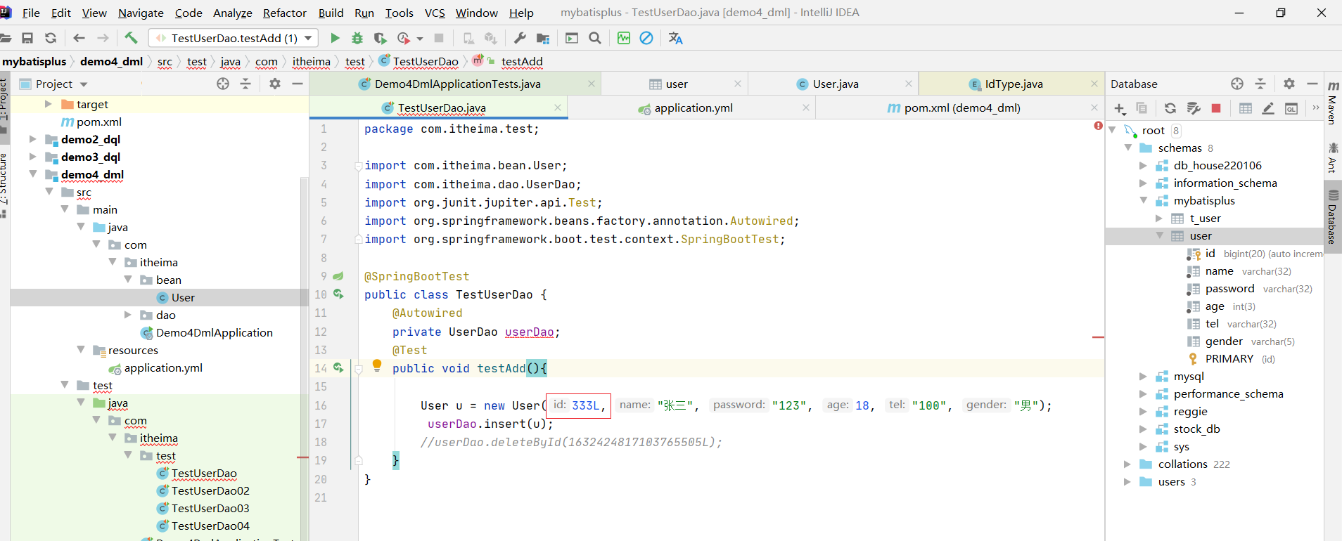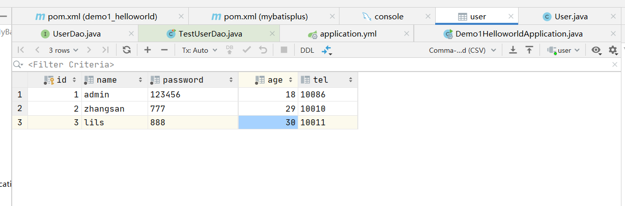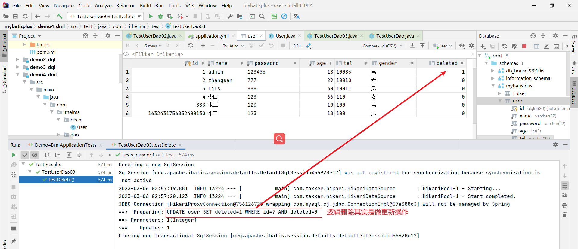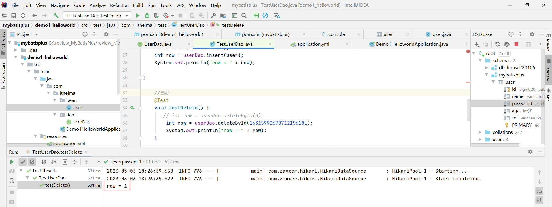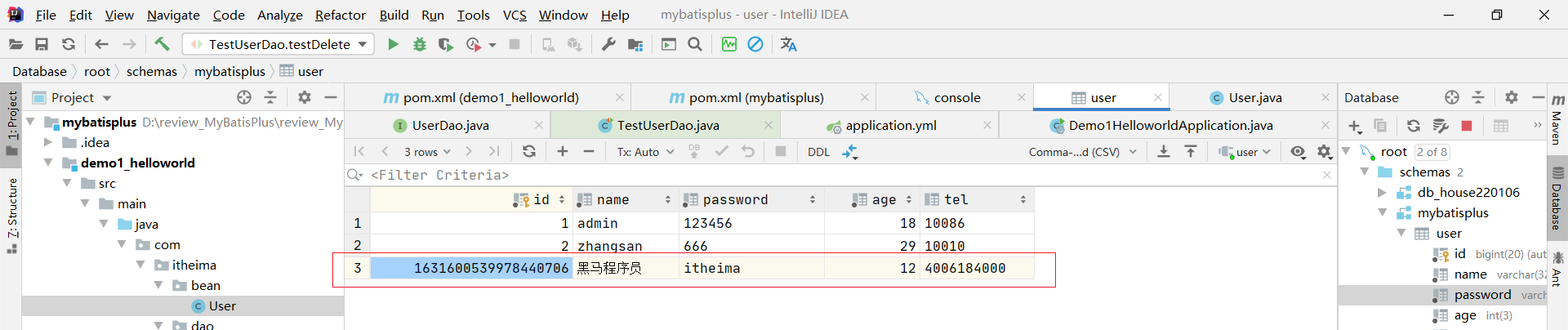 // int row = userDao.deleteById(3);