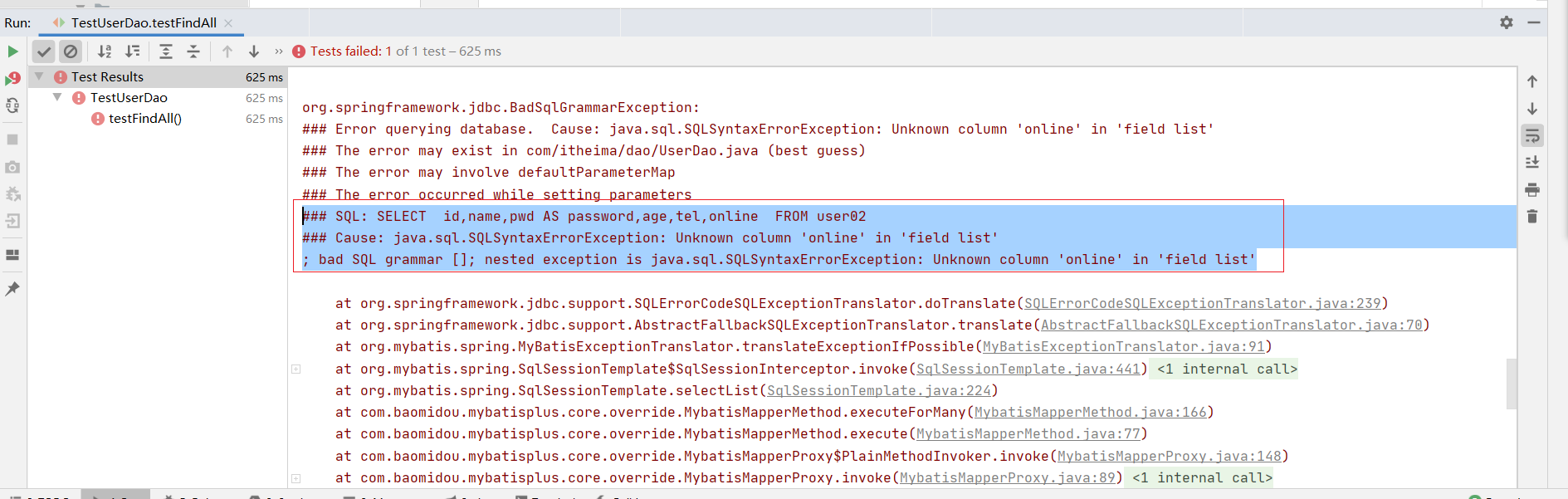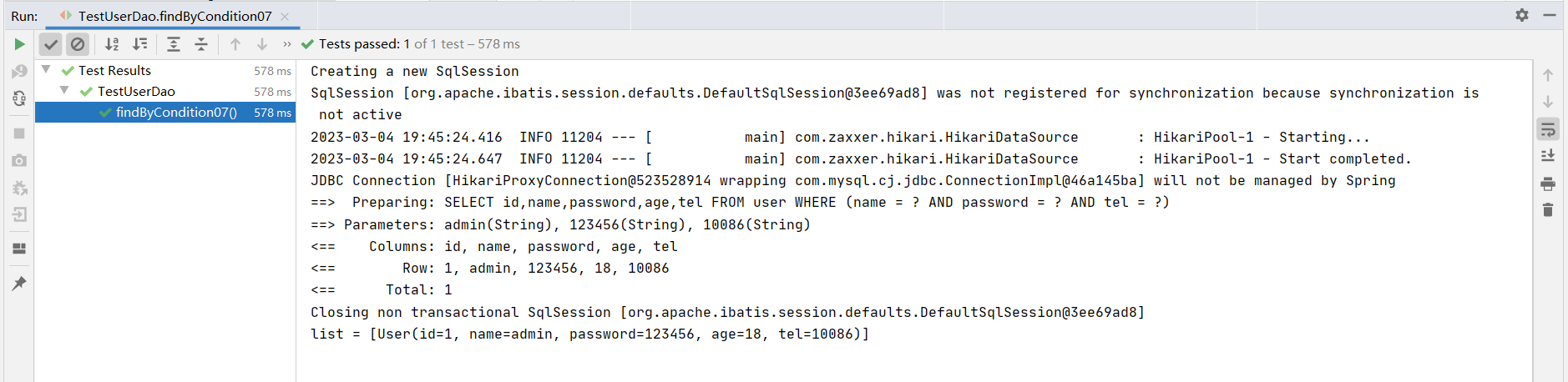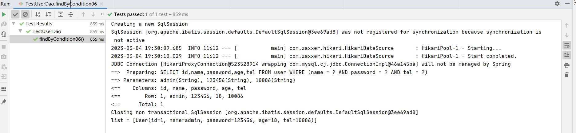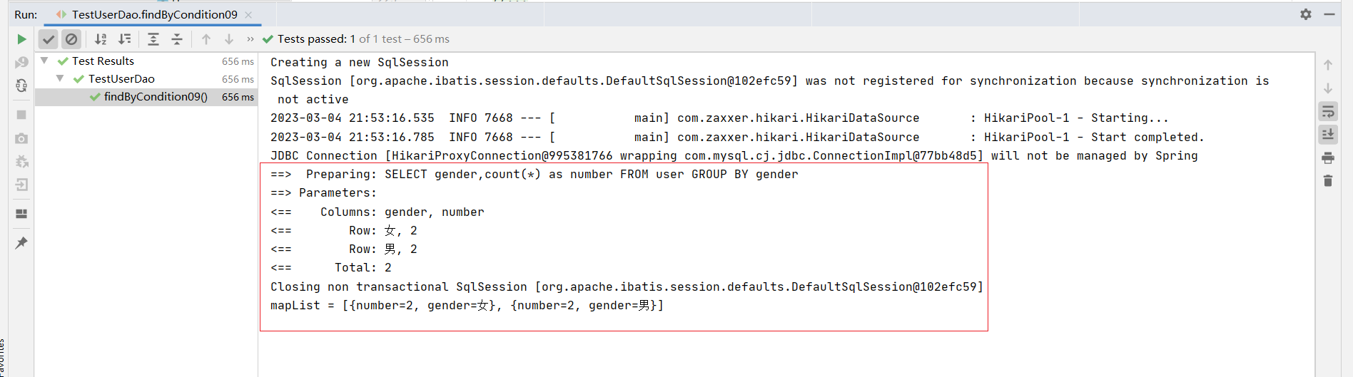 ⑦:测试类中注入dao接口,测试功能