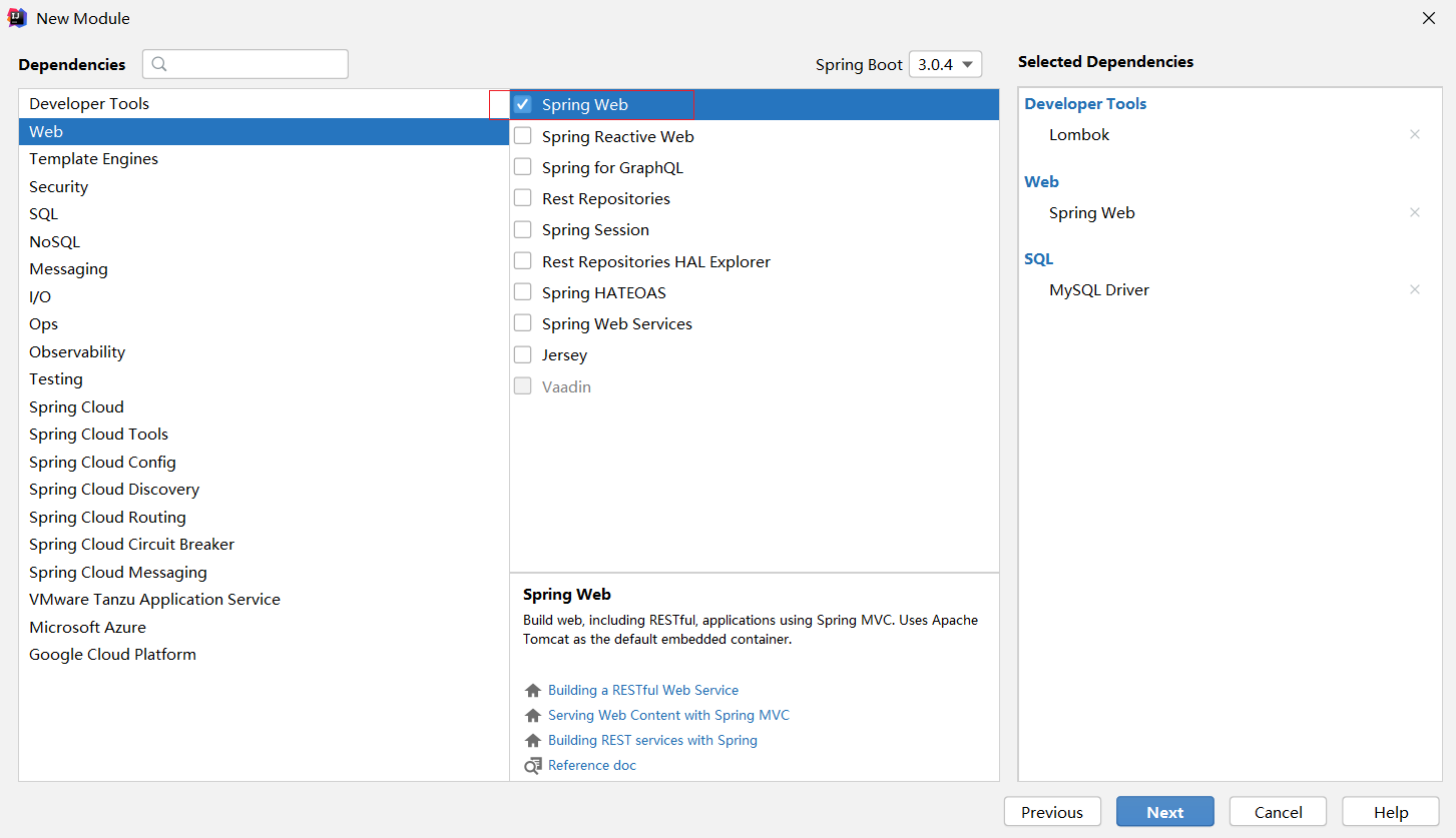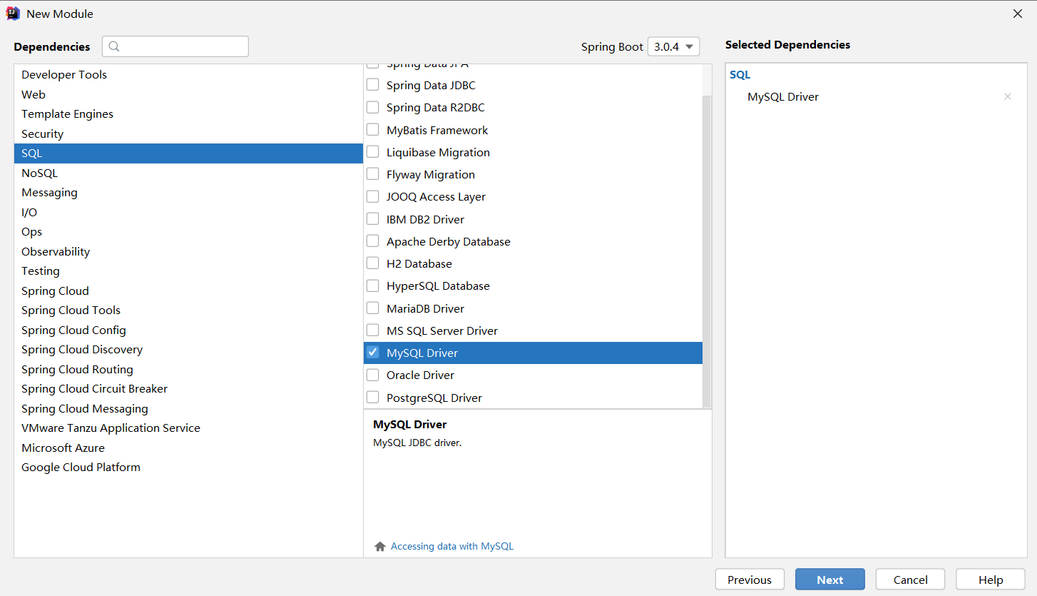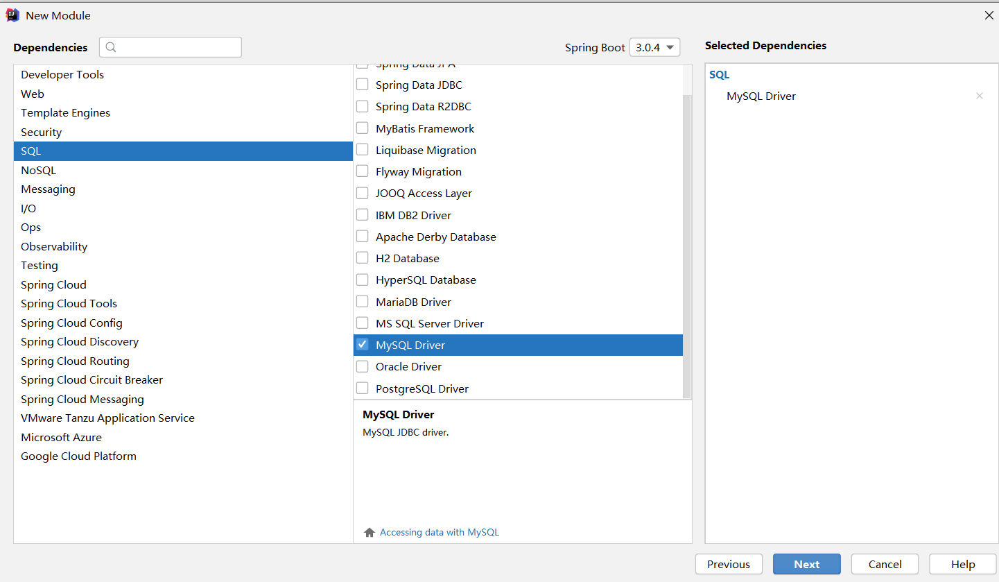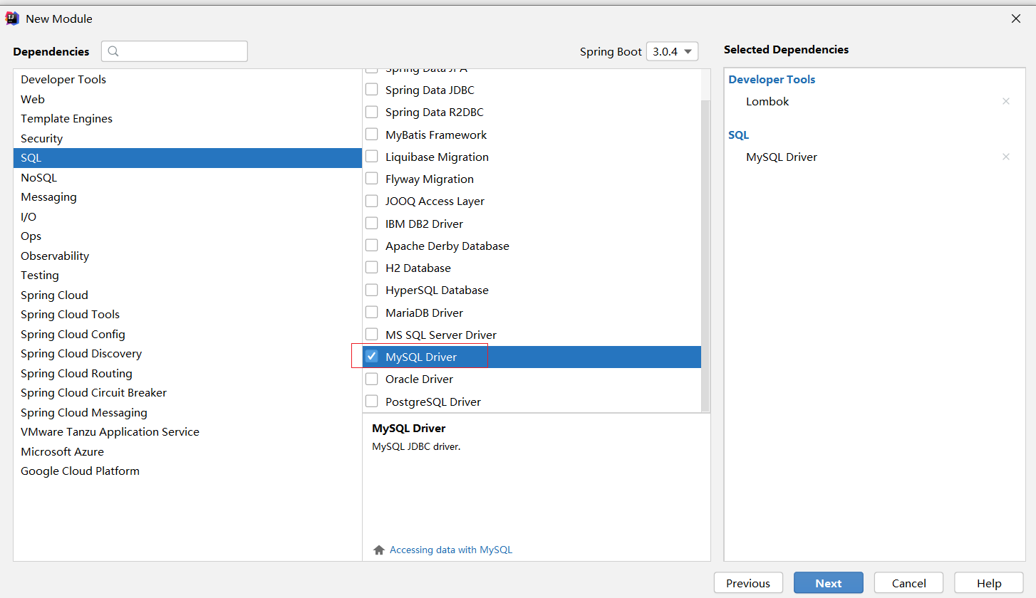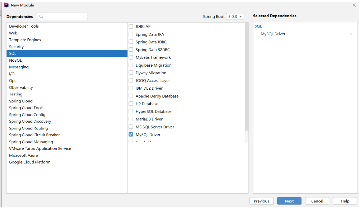 ②:选择当前模块需要使用的技术集(仅保留JDBC)