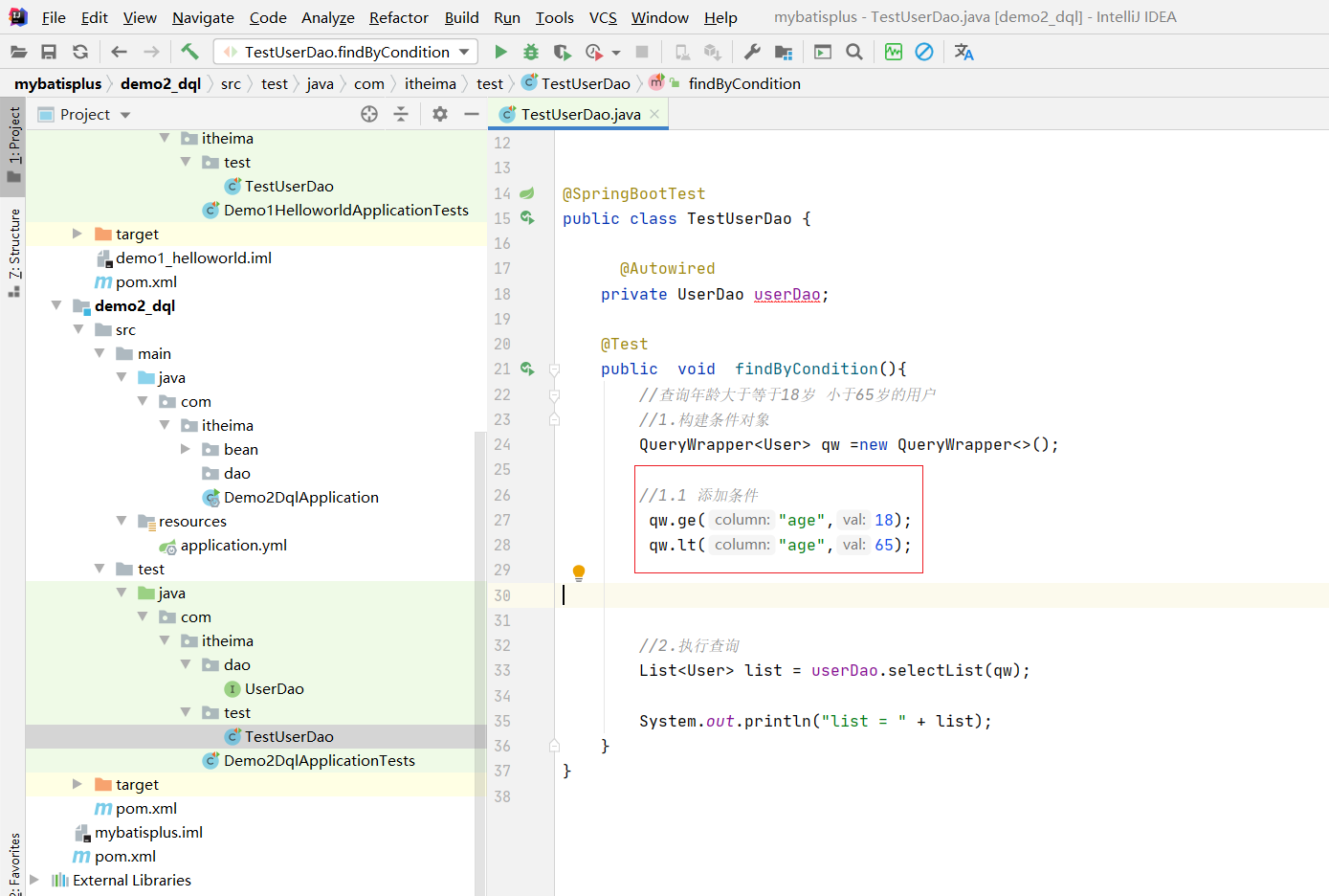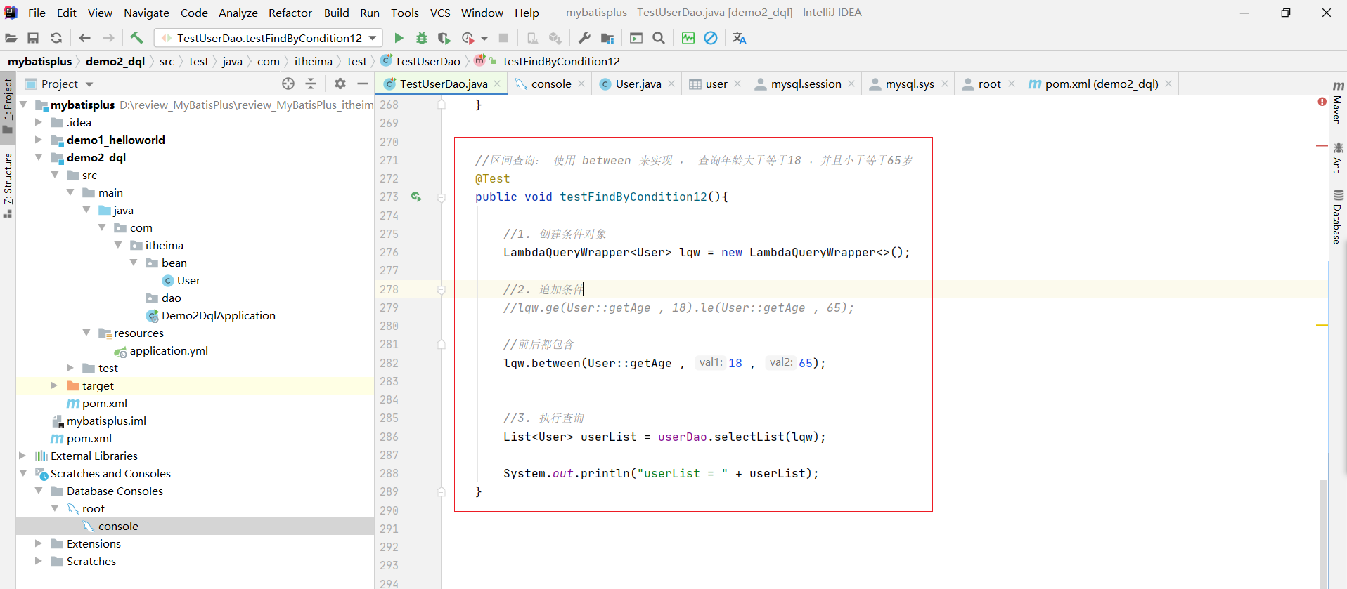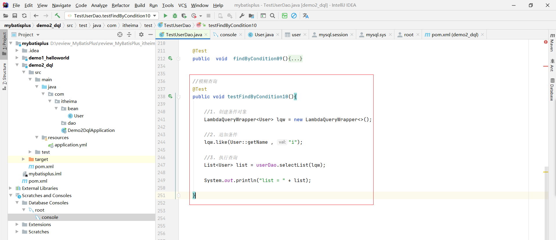能够掌握MyBatisPlus的条件查询