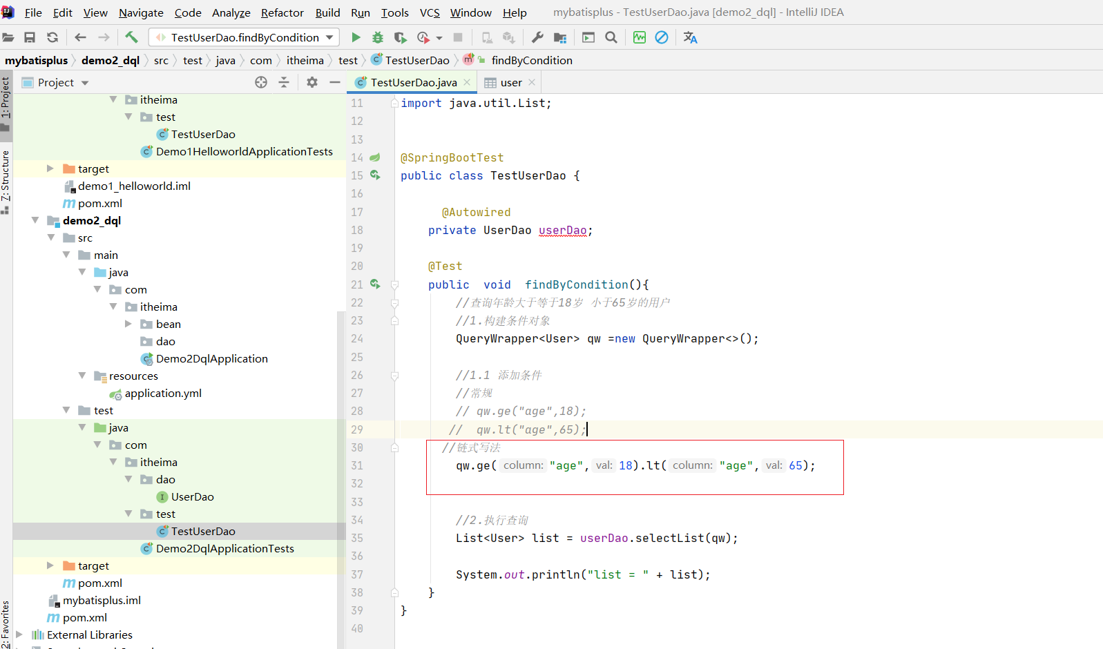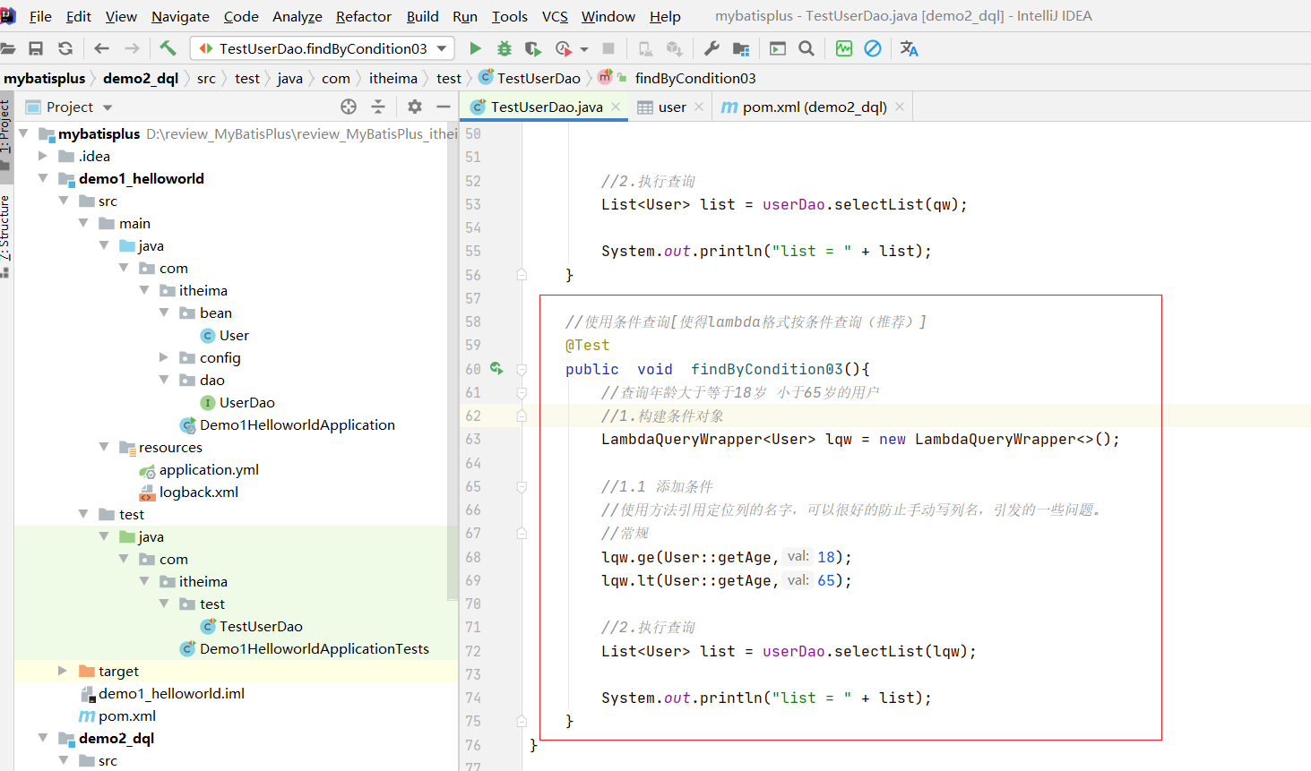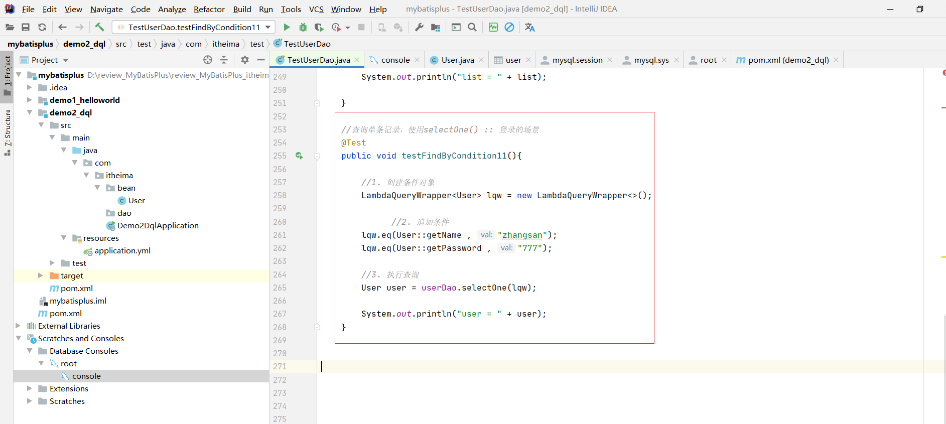 能够掌握MyBatisPlus的条件查询