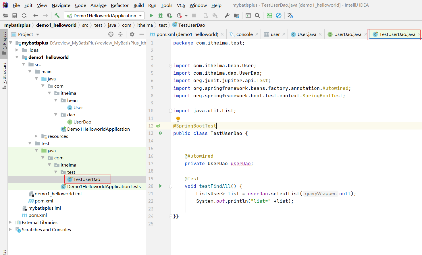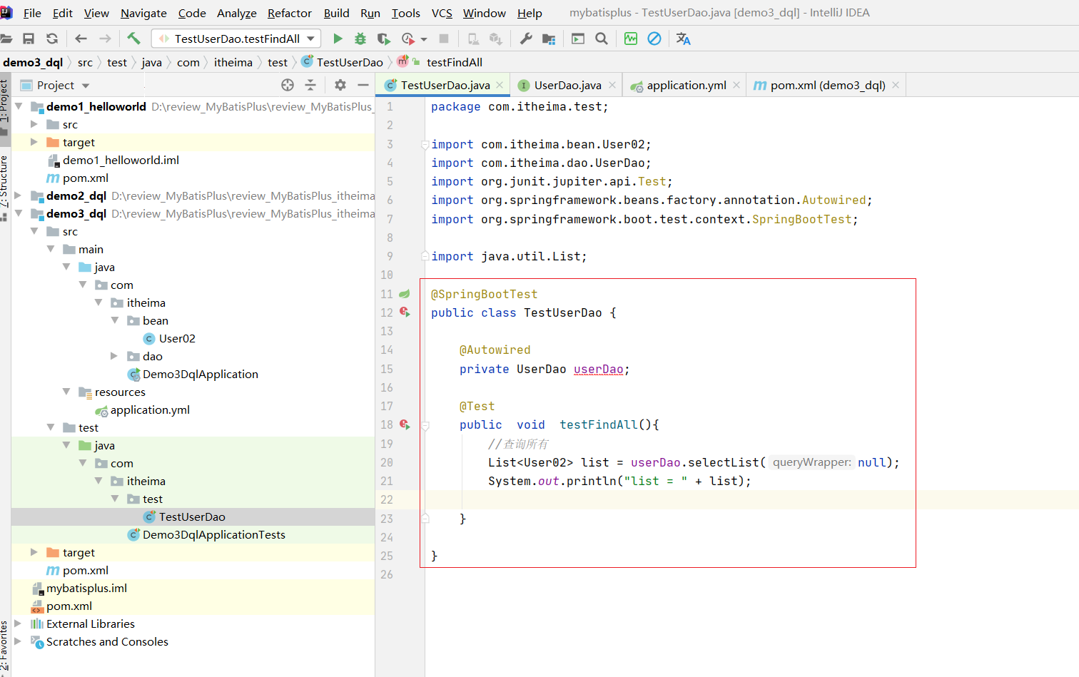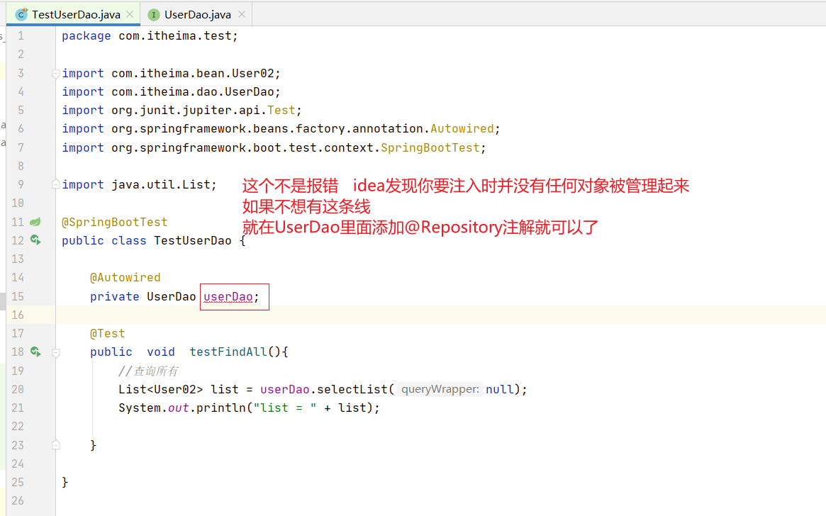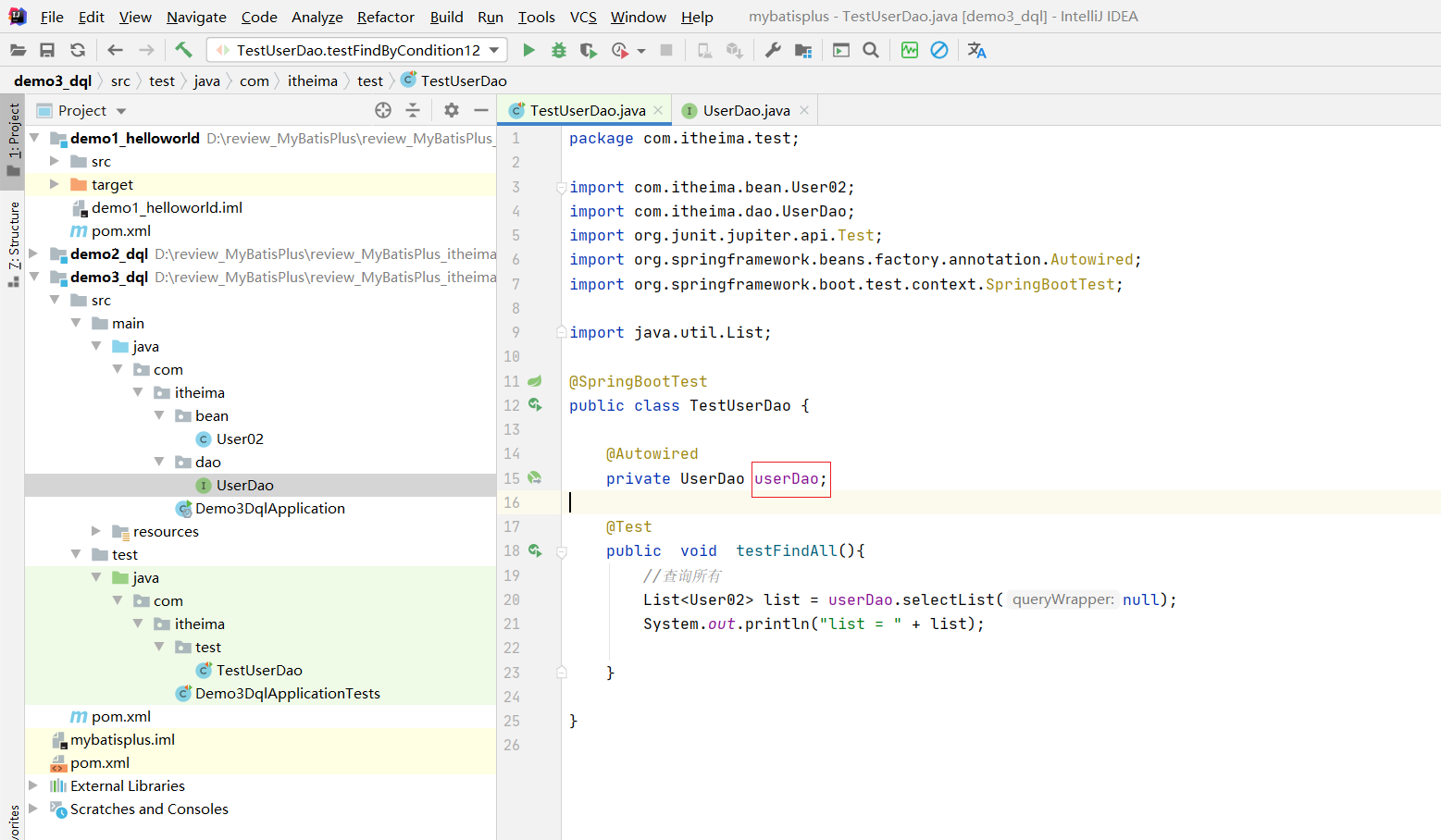 List<User> list = userDao.selectList(null);