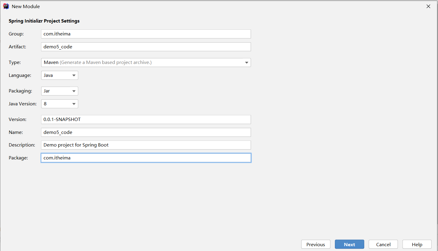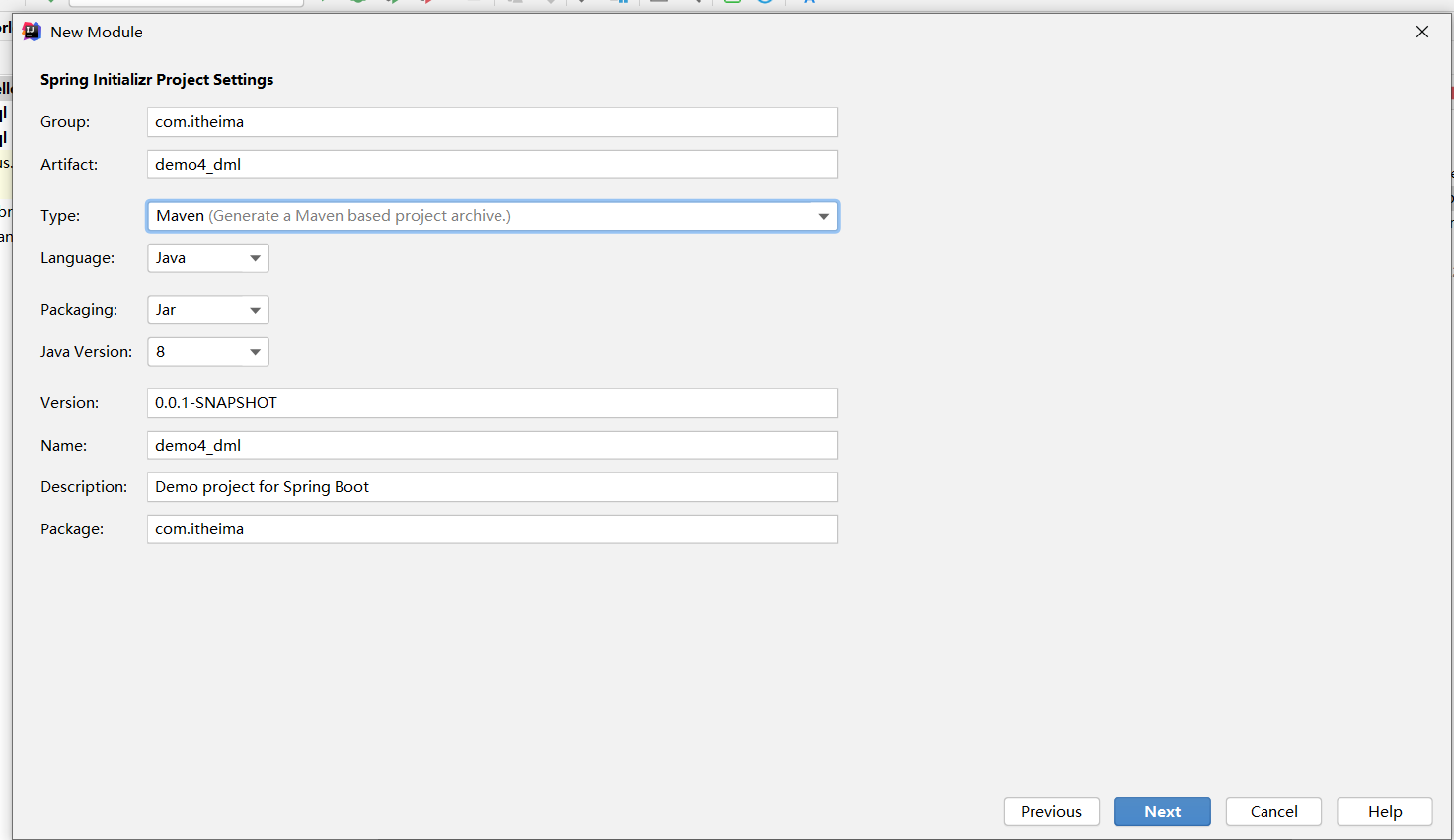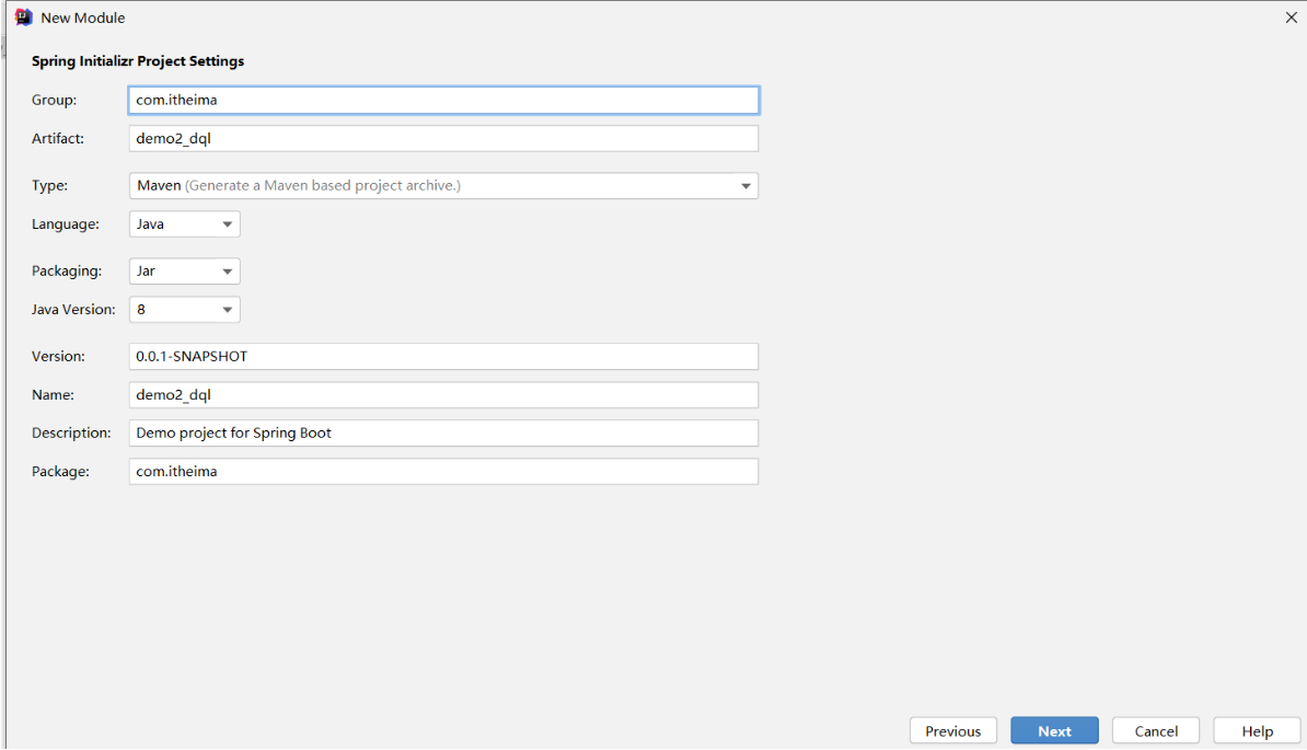 ①:创建新模块,选择Spring初始化,并配置模块相关基础信息