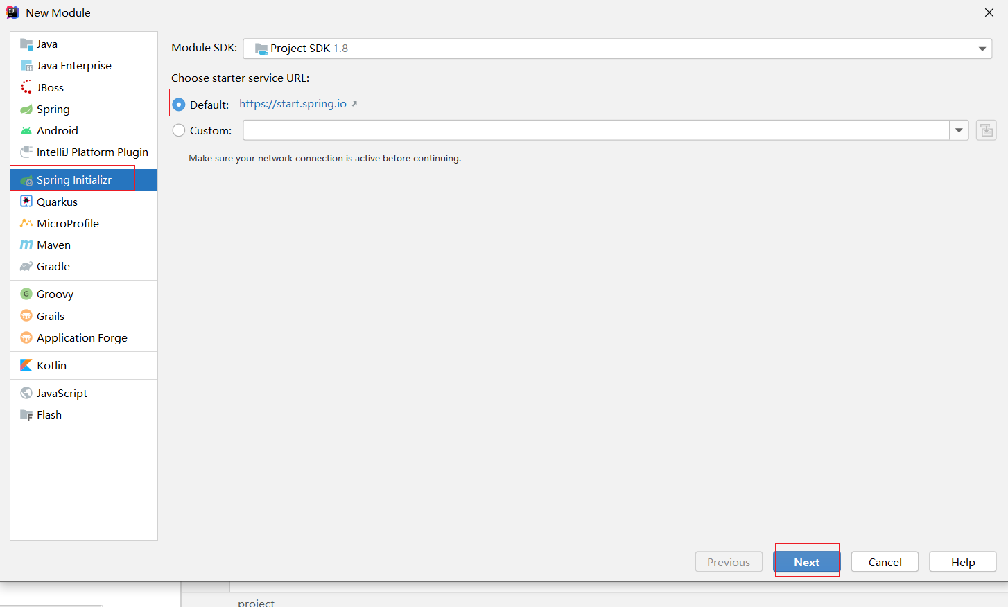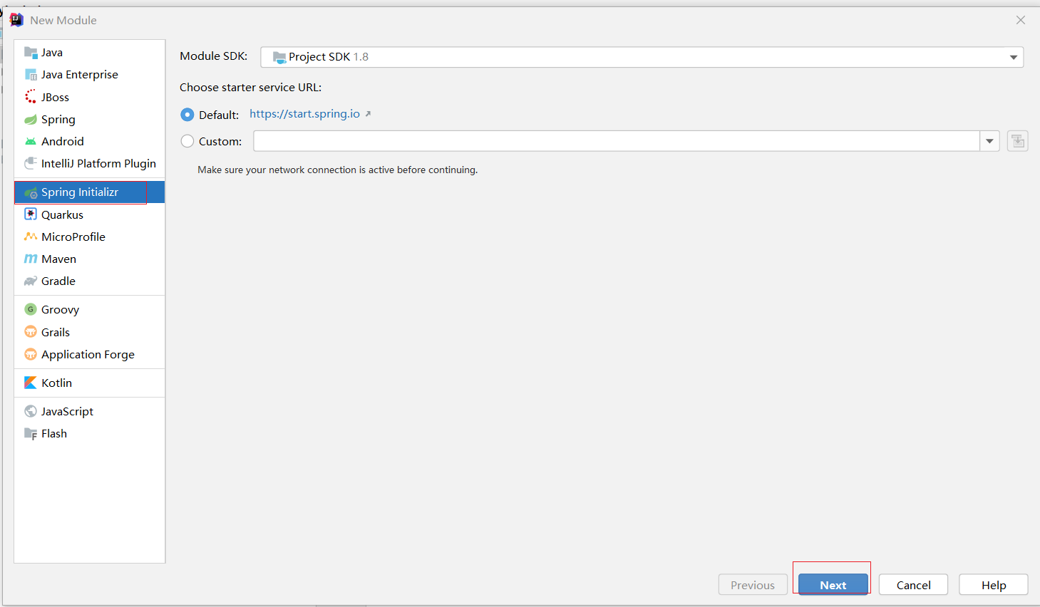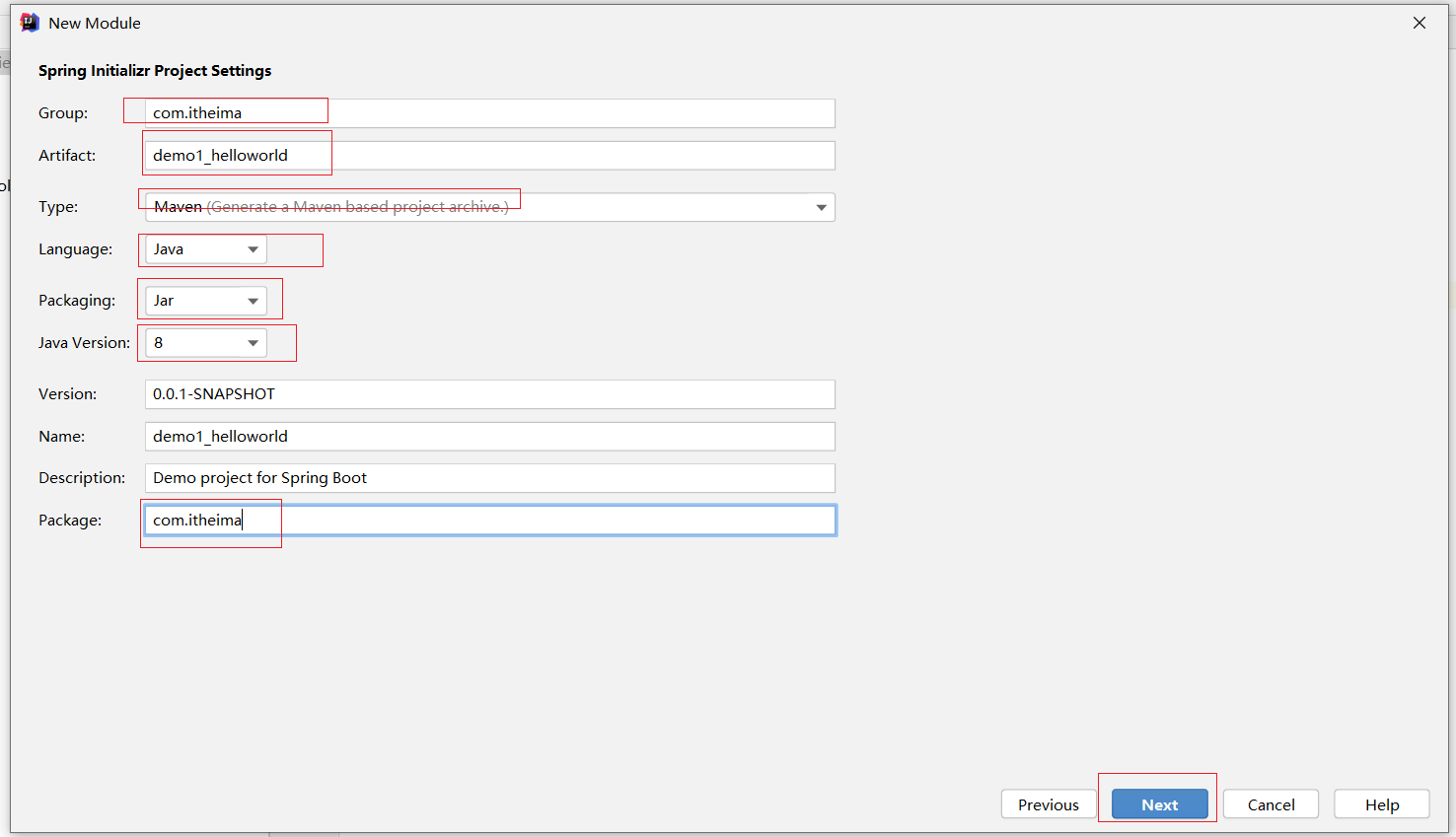 ①:创建新模块,选择Spring初始化,并配置模块相关基础信息